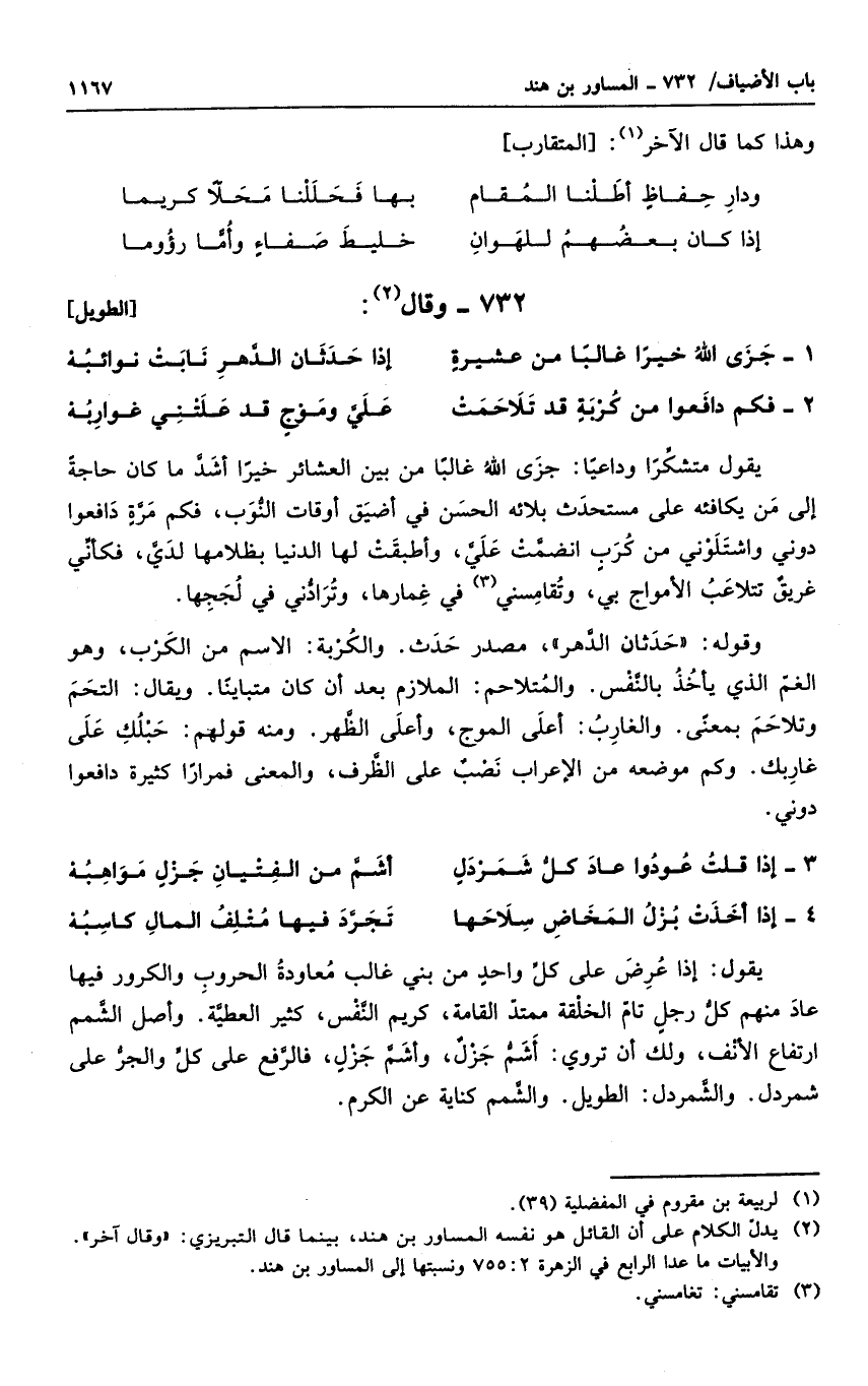 يقول: إذا عرض على كل واحد من بني غالب معاودة الحروب والكرور فيها عاد منهم كل رجل تام الخلقة ممتد القامة، كريم النفس، كثير العطية. وأصل الشم ارتفاع الأنف. ولك ان تروى: أشم جزل، وأشم جزل، فالرفع على كل والجر على شمردل. والشمردل: الطويل. والشمم كناية عن الكرم.