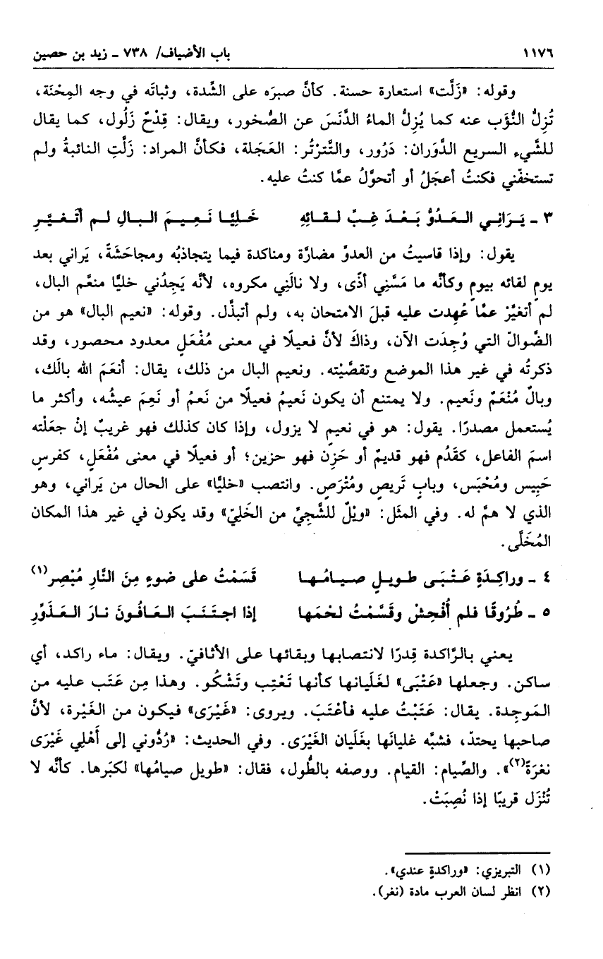 وقوله زلت استعارة حسنة. كأن صبره على الشدة، وثباته في وجه المحنة، تزل النوب عنه كما يزل الماء الدنس عن الصخور، ويقال: قدح زلول، كما يقال للشيء السريع الدوران: درور. والتترتر: العجلة، فكأن المراد: زلت النائبة ولم تستخفني فكنت أعجل أو أتحول عما كنت عليه.