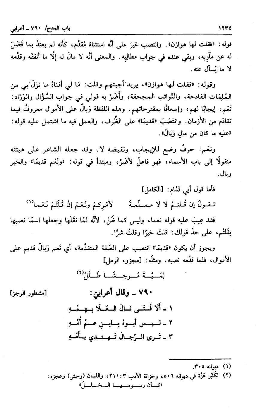 فقد عيب عليه نعما، وليس كما ظن، لأنه لما نقلها وجعلها اسماً نصبها بقلتم، على حد قولك: قلت خيراً وقلت شراً. ويجوز أن يكون قديماً انتصب على الصفة المتقدمة، أي نعم وبال قديم على الأموال، فلما قدمه نصبه. ومثله: