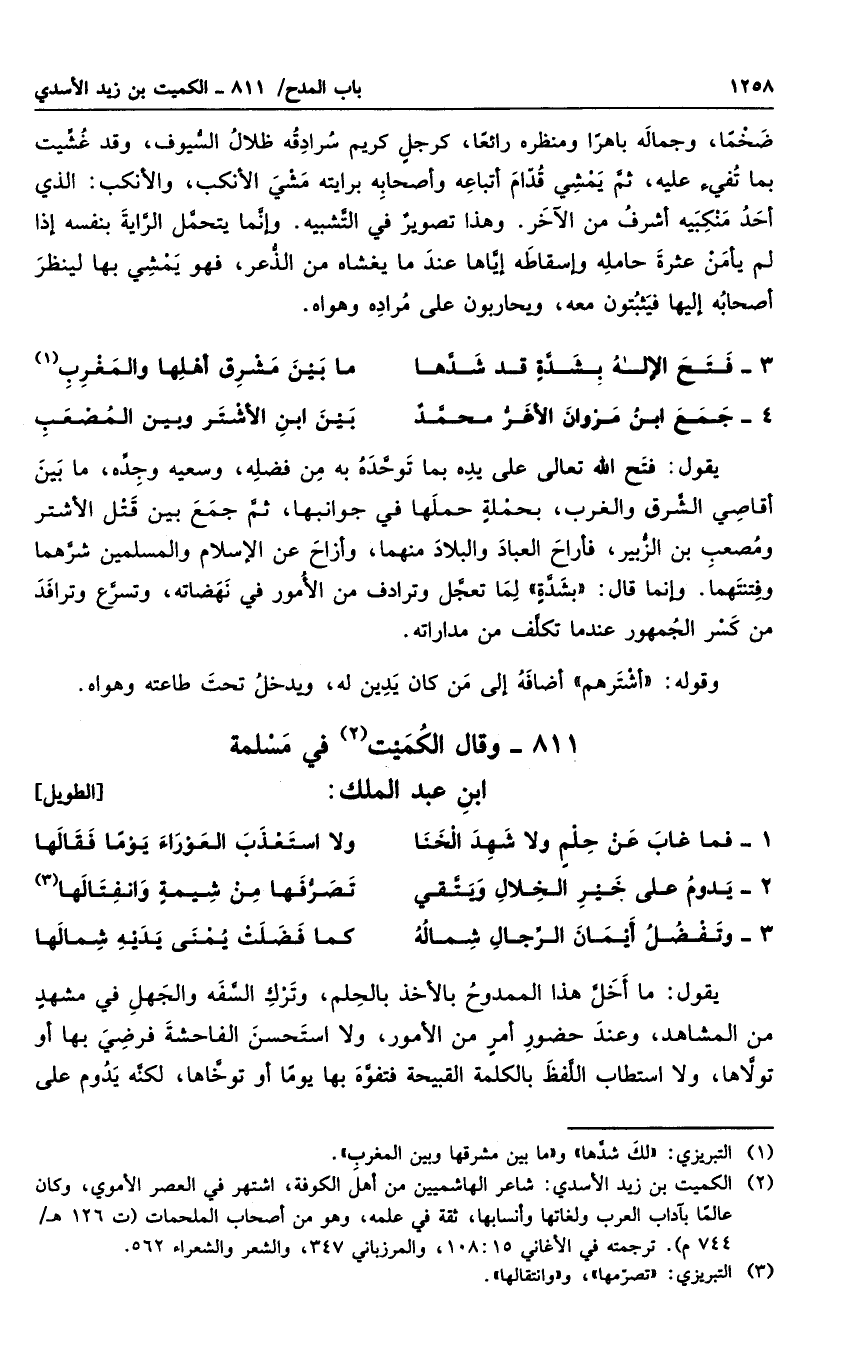 يقول: فتح الله تعالى على يده بما توحده به من فضله، وسعيه وجده، ما بين أقاصي الشرق والغرب، بحملةٍ حملها في جوانبها، ثم جمع بين قتل الأشتر ومصعب بن الزبير، فأراح العباد والبلاد منهما، وأزاح عن الإسلام والمسلمين شرهما وفتنتهما. وإنما قال " بشدة " لما تعجل وترادف من الأمور في نهضاته، وتسرع وترافد من كسر الجمهور عندما تكلف من مداراتهوقوله " أشترهم " أضافه إلى من كان يدين له، ويدخل تحت طاعته وهواه.