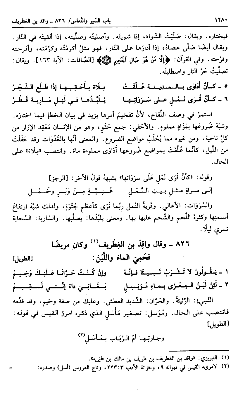 النسئ: الرثيئة. والحران: الشديد العطش. وعليك من صفة وخيم، وقد قدمه فانتصب على الحال. ومويسل: تصغير مأسلٍ الذي ذكره امرؤ القيس في قوله: