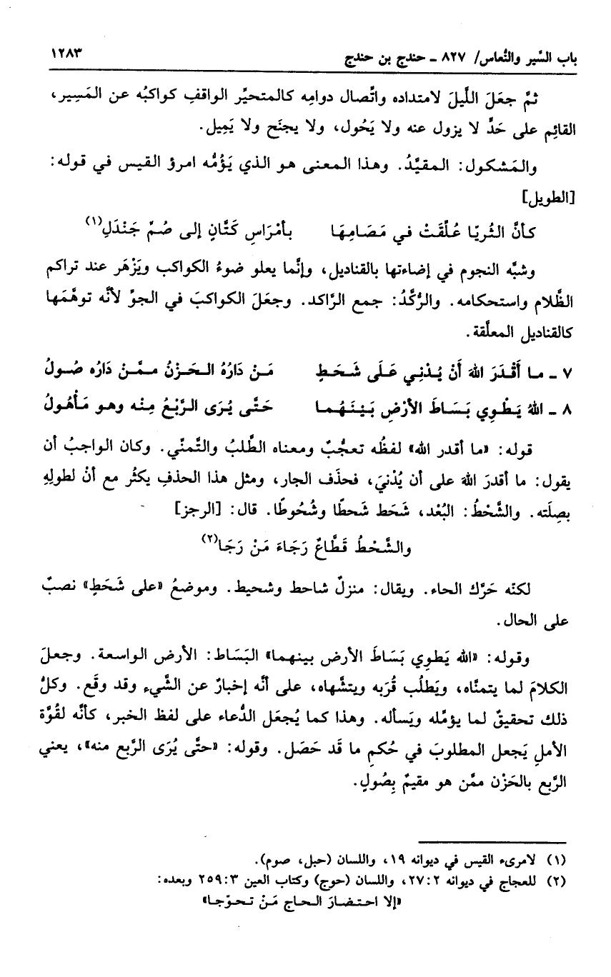 قوله " ما أقدر الله " لفظه تعجبٌ ومعناه الطلب والتمني. وكان الواجب أن يقول: ما أقدر الله على أن يدني، فحذف الجار، ومثل هذا الحذف يكثر مع أن لطوله بصلته. والشحط: البعد، شحط شحطاً وشحوطاً. قال: