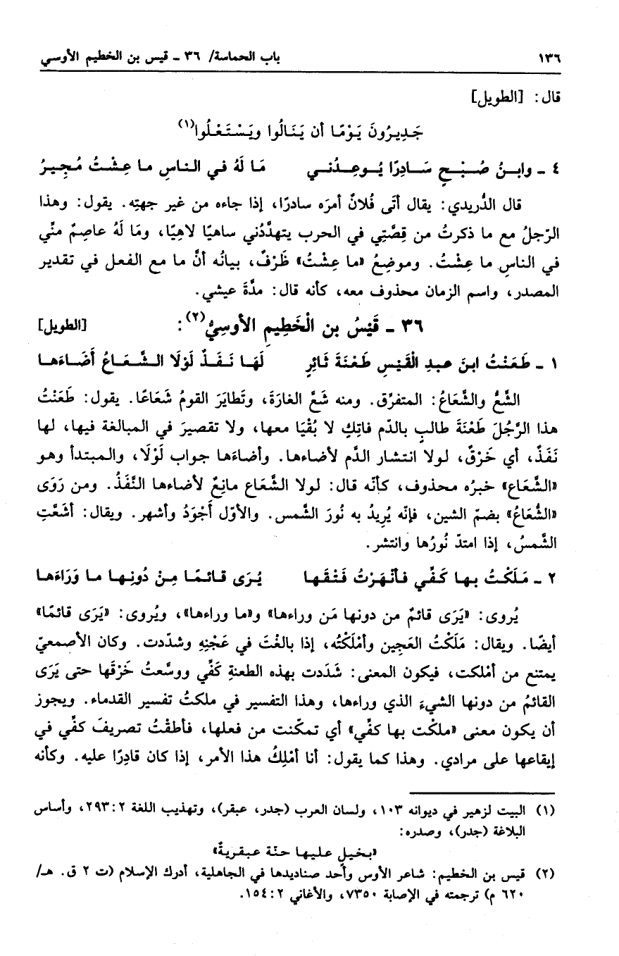 طعنت ابن عبد القيسٍ طعنة ثائرٍ ... لها نفذٌ لولا الشعاع أضاءها