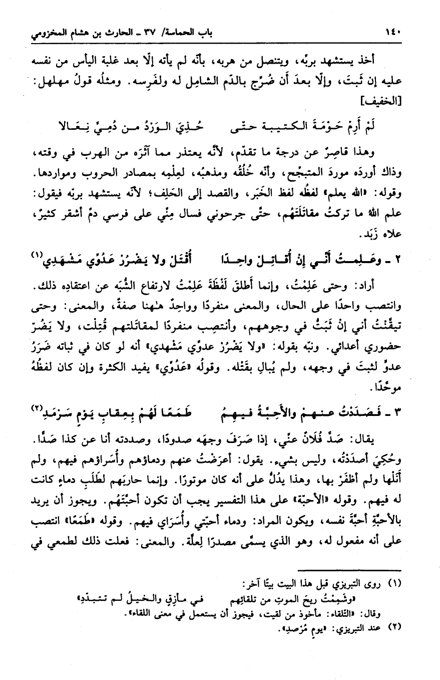 يقال: صد فلان عني، إذا صرف وجهه صدوداً، وصددته أنا عن كذا صداً. وحكي أصددته، وليس بشيء. يقول: أعرضت عنهم ودماؤهم وأسراؤهم فيهم، ولم أنلها ولم أظفر بها. وهذا يدل على أنه كان موتوراً. وإنما حاربهم لطلب دماءٍ كانت له فيهم. وقوله الأحبة على هذا التفسير يجب أن تكون أحبتهم. ويجوز أن يريد بالأحبة أحبة نفسه، ويكون المراد: ودماء أحبتي وأسراي فيهم. وقوله طمعاً انتصب على أنه مفعول له، وهو الذي يسمى مصدراً لعلة. والمعنى: فعلت ذلك لطمعي في