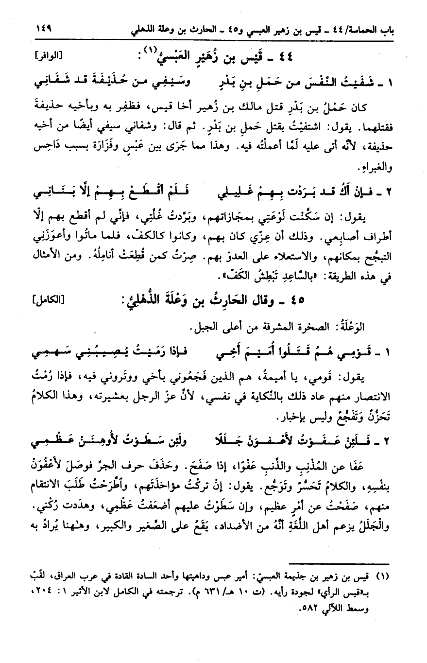 شفيت النفس من حمل بن بدرٍ ... وسيفي من حذيفة قد شفاني
