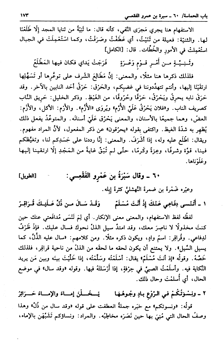 فلذلك ذكرها هنا مثلاً، والمعنى: إن مطالع الشرف على توعرها أو تسهلها ارتقينا إليها، وأنتم تتهددوننا في غضبكم، والحرق: حرق أحد النابين بالآخر. وقد حرق نابه يحرق ويحرق، حرقاً وحروقاً، من الغيظ. وذكر الخليل: حريق الناب كصريف الناب. و " فلان يحرق على الأرم " ويروى " الأزم ". والأرم: الأكل، والأزم: العض، وهما جميعاً بالأسنان، والمعنى يحرق على أسنانه. والمتوعد يفعل ذلك يظهر به شدة الغيظ. واكتفى بقوله " يحرقون " عن ذكر المفعول، لأن المراد مفهوم. ويقال: اطلع عليه وله، إذا أشرف. والمعنى إنا رددنا على حسدكم لنا، وتغيظكم فينا، قوة وشرفاً، وعزةً وكرماً، حتى لم تبق غايةً من المجد إلا ارتقينا إليها وعلوناها.