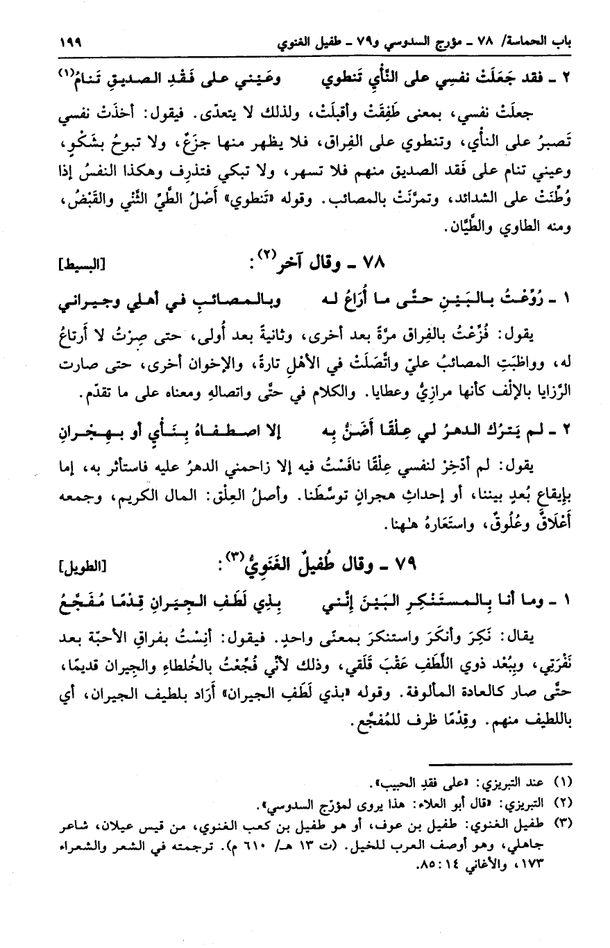 يقال: نكر وأنكر واستنكر بمعنىً واحدٍ. فيقول: أنست بفراق الأحبة بعد نفرتي، وببعد ذوي اللطف عقب قلقي، وذلك لأني فجعت بالخلطاء والجيران قديماً، حتى صار كالعادة المألوفة. وقوله " بذي لطف الجيران " أراد بلطيف الجيران، أي باللطيف منهم. وقدماً ظرف للمفجع.