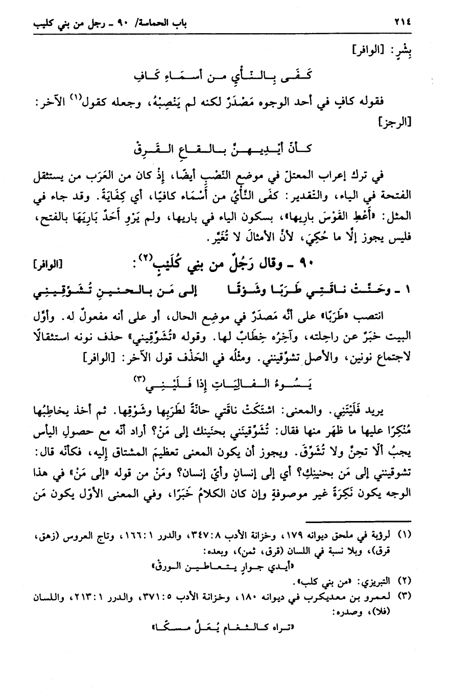 فقوله كافٍ في أحد الوجوه مصدرٌ لكنه لم ينصبه، وجعله كقول الآخر: