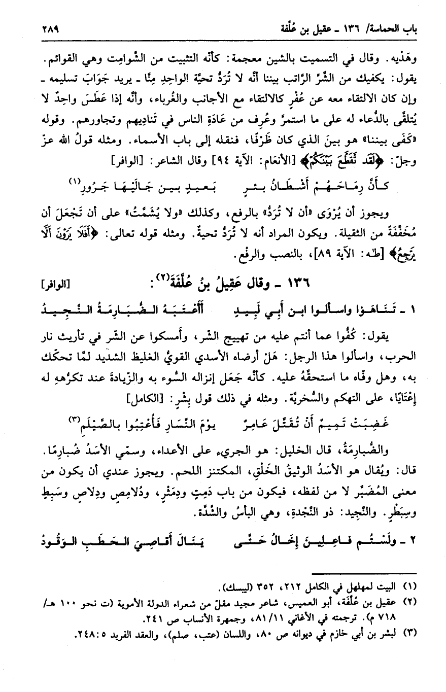 وهديه. وقال في التشميت بالشين معجمة: كأنه التثبيت من الشوامت وهي القوائم. يقول: يكفيك من الشر الراتب بيننا أنه لا ترد تحية الواحد منا - يريد جواب تسليمه - وإن كان الالتقاء معه عن عفر كالالتقاء مع الأجانب والغرباء، وأنه إذا عطس واحدٌ لا يتلقى بالدعاء له على ما استمر وعرف من عادة الناس في تناديهم وتجاورهم. وقوله " كفى بيننا " هو بين الذي كان ظرفاً، فنقله إلى باب الأسماء. ومثله قول الله عز وجل: " لقد تقطع بينكم " وقال الشاعر: