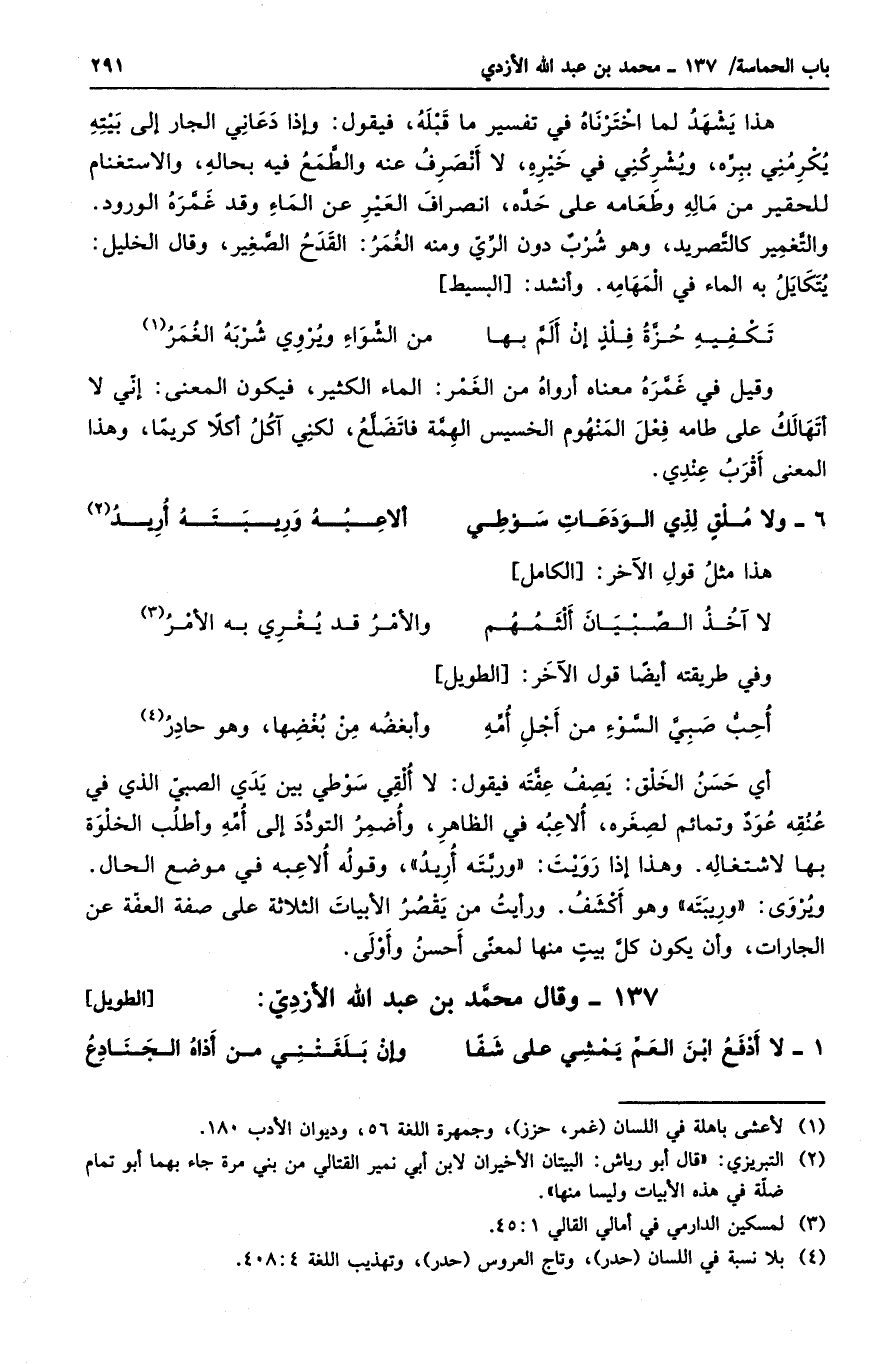 وقيل في غمره معناه أرواه من الغمر: الماء الكثير، فيكون المعنى: إني لا أتهالك على طامه فعل المنهوم الخسيس الهمة فاتضلع، لكني آكل أكلاً كريماً. وهذا المعنى أقرب عندي.