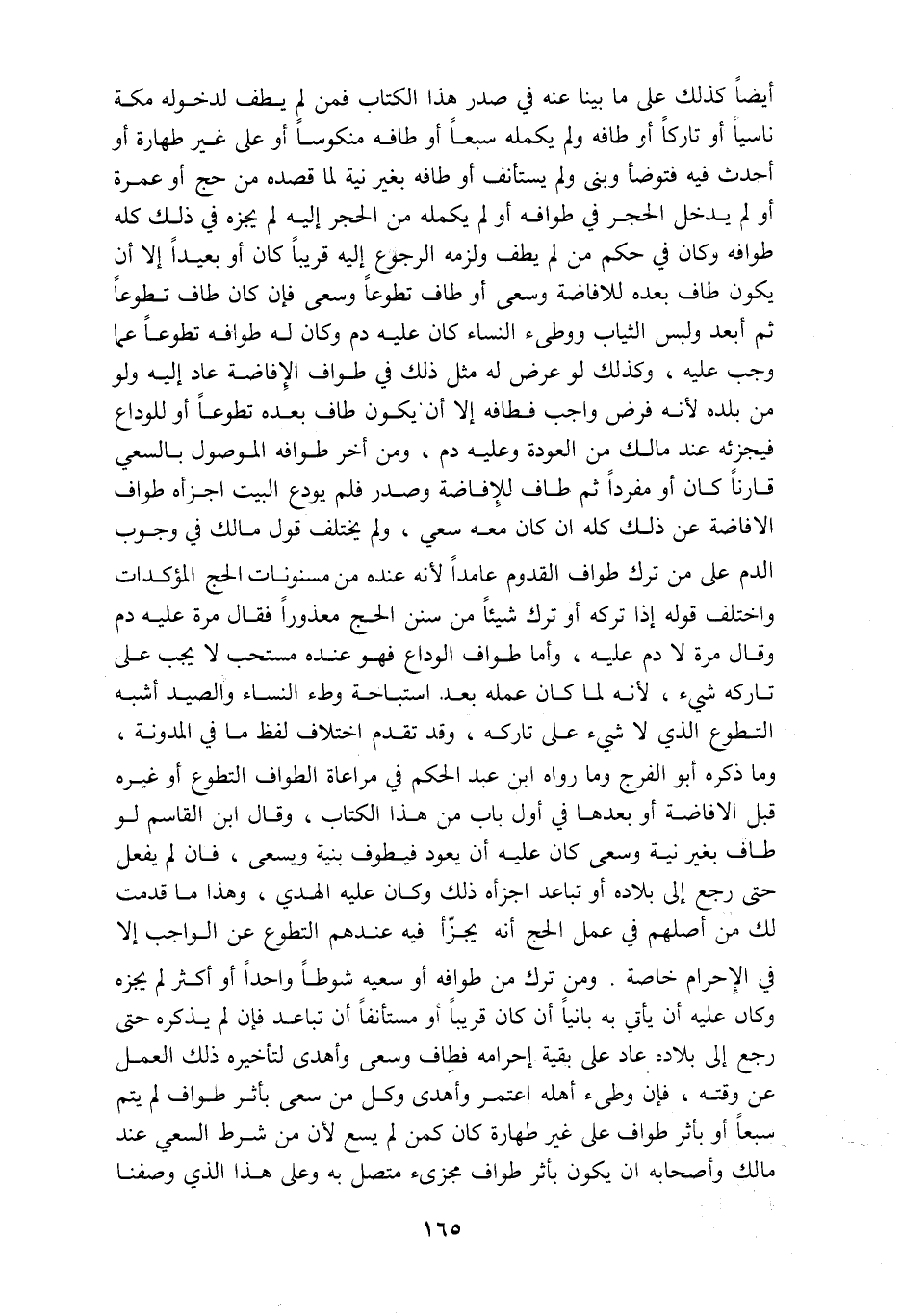 أيضا كذلك على ما بينا عنه في صدر هذا الكتاب فمن لم يطف لدخوله مكة ناسيا أو تاركا أو طافه ولم يكمله سبعا أو طافه منكوسا أو على غير طهارة أو أحدث فيه فتوضأ وبنى ولم يستأنف أو طافه بغير نية لما قصده من حج أو عمرة أو لم يدخل الحجر في طوافه أو لم يكمله من الحجر إله لم يجزه في ذلك كله طوافه وان في حكم من لم يطف ولزمه الرجوع إليه قريبا كان أو بعيدا إلا أن يكون طاف بعده للإفاضة وسعى أو طاف تطوعا وسعى فإن كان طاف تطوعا ثم أبعد ولبس الثياب ووطئ النساء كان عليه دم وكان له طوافه تطوعا عما وجب عليه وكذلك لو عرض له مثل ذلك في طواف الإفاضة عاد إليه ولو من بلده لأنه فرض واجب فطافه إلا أن يكون طاف بعده تطوعا أو للوداع فيجزئه عند مالك من العودة وعليه دم ومن أخر طوافه الموصول بالسعي قارنا كان و مفردا ثم طاف للإفاضة وصدر فلم يودع البيت اجزأه طواف الإفاضة عن ذلك كله إن كان معه سعي ولم يختلف قول مالك في وجوب الدم على من ترك طواف القدوم عامدا لأنه عنده من مسنونات الحج المؤكدات واختلف قوله إذا تركه أو ترك شيئا من سنن الحج معذورا فقال مرة عليه دم وقال مرة لا دم عليه وأما طواف الوداع فهو عنده مستحب لا يجب على تاركه شيء لأنه لما كان عمله بعد استباحة وطء النساء والعبيد أشبه التطوع الذي لا شيء على تاركه وقد تقدم اختلاف لفظ ما في المدونة وما ذكره أبو الفرج وما رواه ابن عبد الحكم في مراعاة الطواف التطوع أو غيره قبل الإفاضة أو بعدها في أول باب من هذا الكتاب وقال ابن القاسم لو طاف بغير نية وسعى كان عليه أن يعود فيطوف بنية ويسعى فإن لم يفعل حتى رجع إلى بلاده أو تباعد اجزأه ذلك وكان عليه الهدي وهذا ما قدمت لك من أصلهم في عمل الحج أنه يجزأ فيه عندهم التطوع عن الواجب إلا في الإحرام خاصة ومن ترك من طوافه أو سعيه شوطا واحدا أو أكثر لم يجزه وكان عليه أن يأتي به بانيا أن كان قريبا أو مستأنفا أن تباعد فإن لم يذكره حتى رجع إلى بلاده عاد على بقية إحرامه فطاف وسعى وأهدى لتأخيره ذلك العمل عن وقته فإن وطئ أهله اعتمر وأهدى وكل من سعى بأثر طواف لم يتم سبعا أو بأثر طواف على غير طهارة كان كمن لم يسع لأن من شرط السعي عند مالك وأصحابه أن يكون بأثر طواف مجزئ متصل به وعلى هذا الذي وصفنا