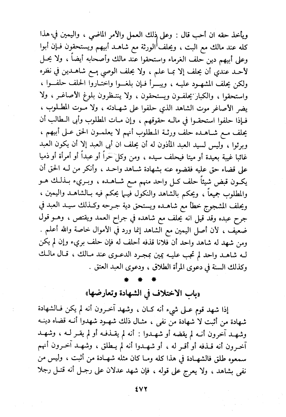 ويأخذ حقه إن أحب قال وعلى ذلك العمل والأمر الماضي واليمين في هذا كله عند مالك مع البت ويحلف الورثة مع شاهد أبيهم ويستحقون فإن أبوا وعلى أبيهم دين حلف الغرماء واستحقوا عند مالك وأصبحاه أيضا ولا يحل لأحد عندي أن يحلف إلا بما علم ولا يحلف الوصي مع شاهدين في نظره ولكن يحلف المشهود عليه ويبرأ فإن بلغوا واختاروا الحلف حلفوا واستحقوا والكبار يحلفون ويستحقون ولا ينتظرون بلوغ الأصاغر ولا يضر الأصاغر موت الشاهد الذي حلفوا على شهادته ولا موت المطلوب فإذا حلفوا استحقوا في ماله حقوقهم وإن مات المطلوب وأبى الطالب أن يحلف مع شاهده حلف ورثة المطلوب أنهم لا يعلمون الحق على أبيهم وبرئوا وليس لسيد العبد المأذون له أن يحلف إن أبى العبد إلا أن يكون العبد غائبا غيبة بعيدة أو ميتا فيحلف سيده ومن وكل حرا أو عبدا أو امرأة أو ذميا على قضاء حق عليه فقضهوه عنه بشهادة شاهد واحد وأنكر من له الحق أن يكون قبض شيئا حلف كل واحد منهم مع شاهده وبرئ بذلك هو والمطلوب جميعا ويحكم بالشاهد والنكول فيما يحكم فيه بالشاهد واليمين ويحلف المشجوجج خطأ مع شاهجه ويستحق دية جرحه وكذلك سيد العبد في جرح عبده وقد قيل إنه يحلف مع شاهده في جراح العمد ويقتص وهو قول ضعيف لأن أصل اليمين مع الشاهد إنما ورد في الأموال خاصة والله أعلم ومن شهد له شاهد واحد أن فلانا قذفه أحلف له فإن حلف برئ وإن لم يكن له شاهد واحد لم تجب عليه يمين بمجرد الدعوى عند مالك قال مالك وكذلك السنة في دعوى المرأة الطلاق ودعوى العبد العتق باب الاختلاف في الشهادة وتعارضها إذا شهد قوم على شيء أنه كان وشهد آخرون أنه لم يكن فالشهادة شهادة من أثبت لا شهادة من نفى مثال ذلك شهند شهدوا أنه قضاه دينه وشهد آخرون أنه لم يقضه أو شهدوا أنه لم يقذفه أو لم يقر له وشهد آخرون أنه قذفه أو أقر له أو شهدوا أنه لم يطلق وشهدد آخرون أنهم سمعوه طلق فالشهادة في هذا كله وما كان مثله شهادة من أثبت وليس من نفى بشاهد ولا يعرج على قوله فإن شهد عدلان على رجل أنه قتل رجلا
