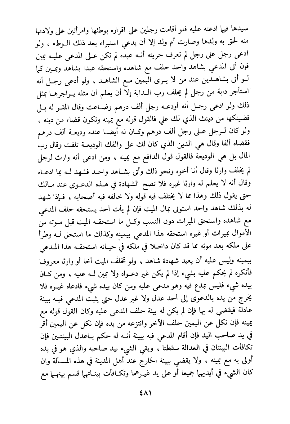 سيدها فيما ادعته عليه فلو أقامت رجلين على اقراره بوطئها وامرأتين على ولادتها منه لحق به ولدها وصارت أم ولد إلا أن يدعي استبراء بعد ذلك الوطء ولو ادعى رجل على رجل لم تعرف حريته أنه عبده لم تكن على المدعى عليه يمين فإن أتى المدعي بشاهد واحد حلف مع شاهده واستحقه عبد بشاهد ويمين كما لو أتى بشاهدين عند من لا يرى اليمين مع الشاهد ولو أدعى رجل أنه استأجر دابة من رجل لم يحلف رب الدابة إلا أن يعلم أن مثله يواجرها بمثل ذلك ولو ادعى رجل أنه أودعه رجل ألف درهم وضاعت وقال المقر له بل قضيتكها من دينك الذي لك علي فالقول قوله مع يمينه وتكون قضاء من دينه ولو كان لرجل على رجل ألف درهم وكان له أيضا عنده وديعة ألف درهم فقضاه ألفا وقال هي الدين الذي كان لك على والفك الوديعة تلفت وقال رب المال بل هي الوديعة فالقول قول الدافع مع يمينه ومن ادعى أنه وارث لرجل لم يخلف وارثا وقال أنا أخوه ونحو ذلك وأتى بشاهد واحد فشهد له بما ادعاه وقال أنه لا يعلم له وارثا غيره فلا تصح الشهادة في هذه الدعوى عند مالك حتى يقول ذلك وهذا مما لا يختلف فيه قوله ولا خالفه فيه أصحابه فإذا شهد له بذلك شاهد واحد استونى بمال الميت فإن لم يأت أحد يستحقه حلف المدعي مع شاهده واستحق الميراث دون النسب وكل ما استحقه الميت قبل موته من الأموال بميراث أو غيره استحقه هذا المدعي بيمينه وكذلك ما استحق له وطرأ على ملكه بعد موته مما قد كان داخلا في ملكه في حياته استحقه هذا المدعي بيمينه وليس عليه أن يعيد شهادة شاهد ولو تخلف الميت أخا أو وارثا معروفا فأنكره لم يحكم عليه بشيء إذا لم يكن غير دعواه ولا يمين له عليه ومن كان بيده شيء فليس بمدع فيه وهو مدعى عليه ومن كان بيده شيء فادعاه غيره فلا يخرج من يده بالدعوى إلى أحد عدل ولا غير عدل حتى يثبت المدعي فيه ببينة عادلة فيقضي له بها فإن لم يكن له بينة حلف المدعى عليه وكان القول قوله مع يمينه فإن نكل عن اليمين حلف الآخر وانتزعه من يده فإن نكل عن اليمين أقر في يد صاحب اليد فإن أقام المدعي فيه ببينة أنه له حكم باعدل البينتين فإن تكافأت البينتان في العدالة سقطتا وبقي الشيء بيد صاحبه والذي هو في يده أولى به مع يمينه ولا يقضي ببينة الخارج عند أهل المدينة في هذه المسألة وان كان الشيء في أيديهما جميعا أو على يد غيرهما وتكافأت بيناتهما قسم بينهما مع