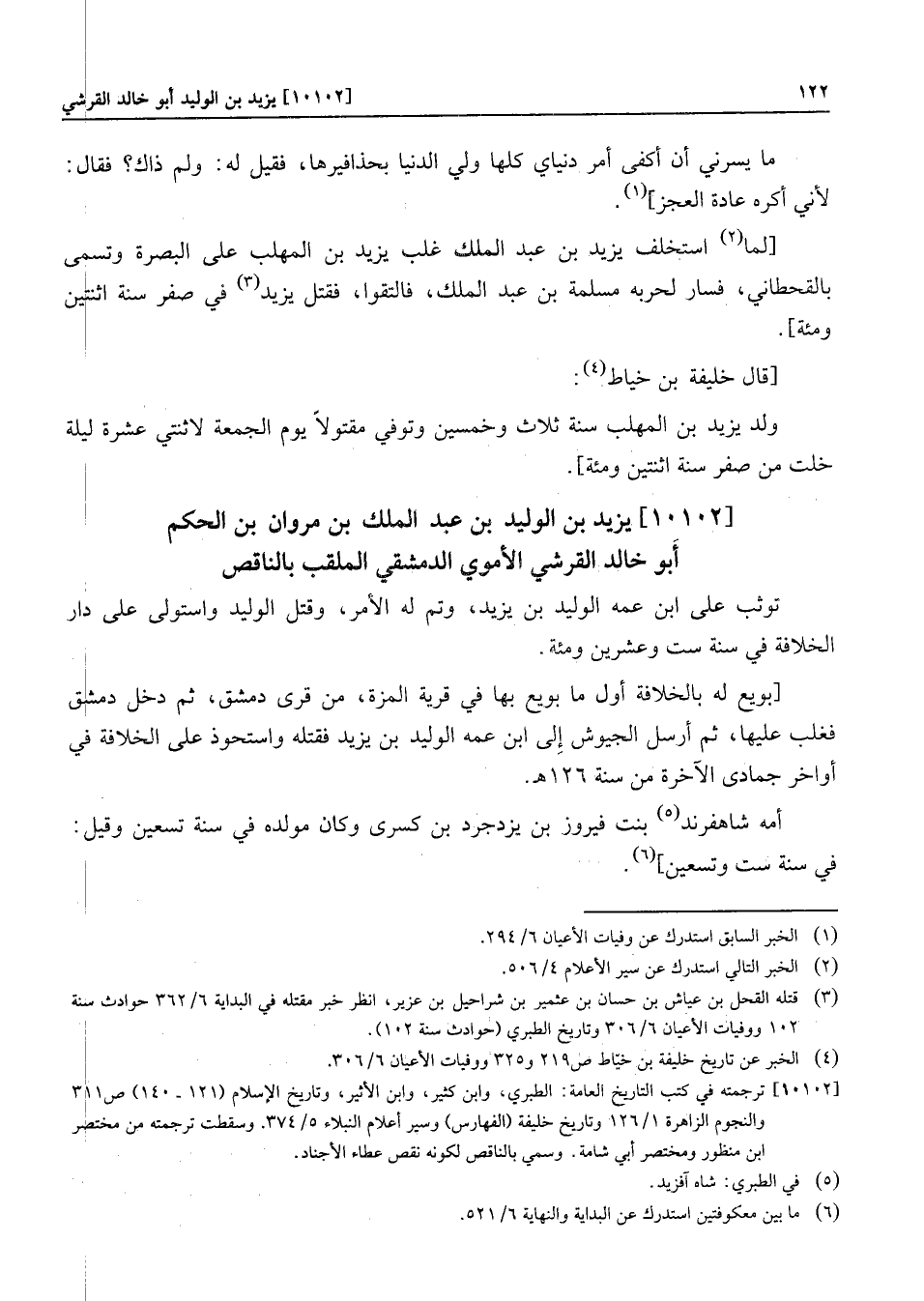 [10102] ترجمته في كتب التاريخ العامة: الطبري، وابن كثير، وابن الأثير، وتاريخ الإسلام (121- 140) ص 311 والنجوم الزاهرة 1/126 وتاريخ خليفة (الفهارس) وسير أعلام النبلاء 5/374. وسقطت ترجمته من مختصر ابن منظور ومختصر أبي شامة. وسمي بالناقص لكونه نقص عطاء الأجناد.