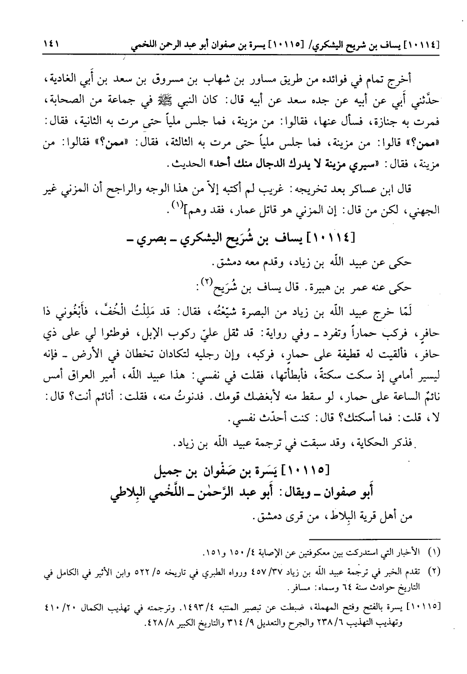 [10115] يسرة بالفتح وفتح المهملة، ضبطت عن تبصير المنتبه 4/1493. وترجمته في تهذيب الكمال 20/410 وتهذيب التهذيب 6/238 والجرح والتعديل 9/314 والتاريخ الكبير 8/428.