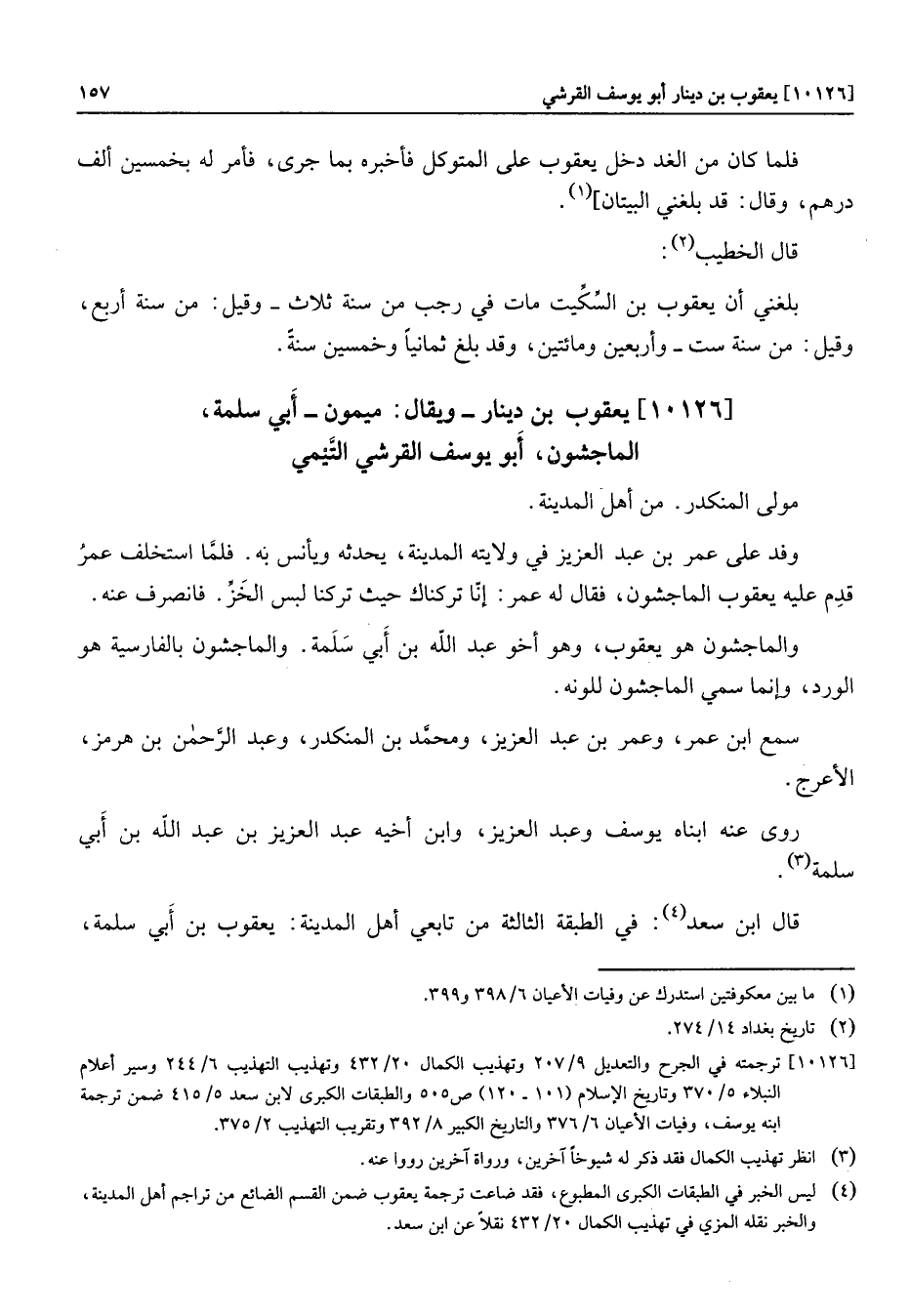 [10126] يعقوب بن دينار- ويقال: ميمون- أبي سلمة، الماجشون، أبو يوسف القرشي التّيمي