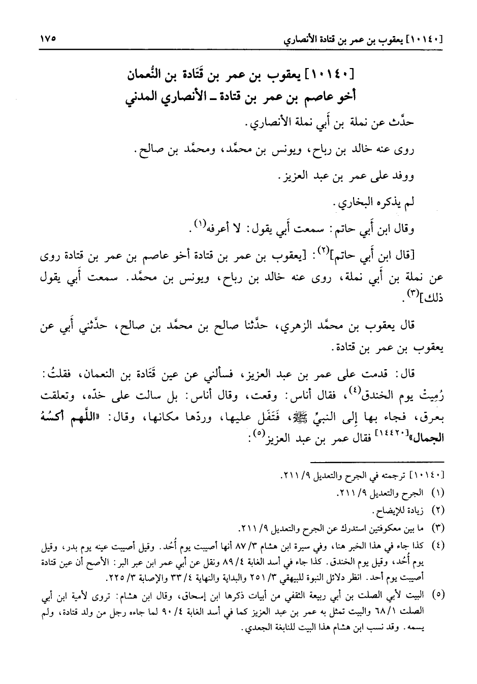 [10140] يعقوب بن عمر بن قتادة بن النّعمان أخو عاصم بن عمر بن قتادة- الأنصاري المدني
