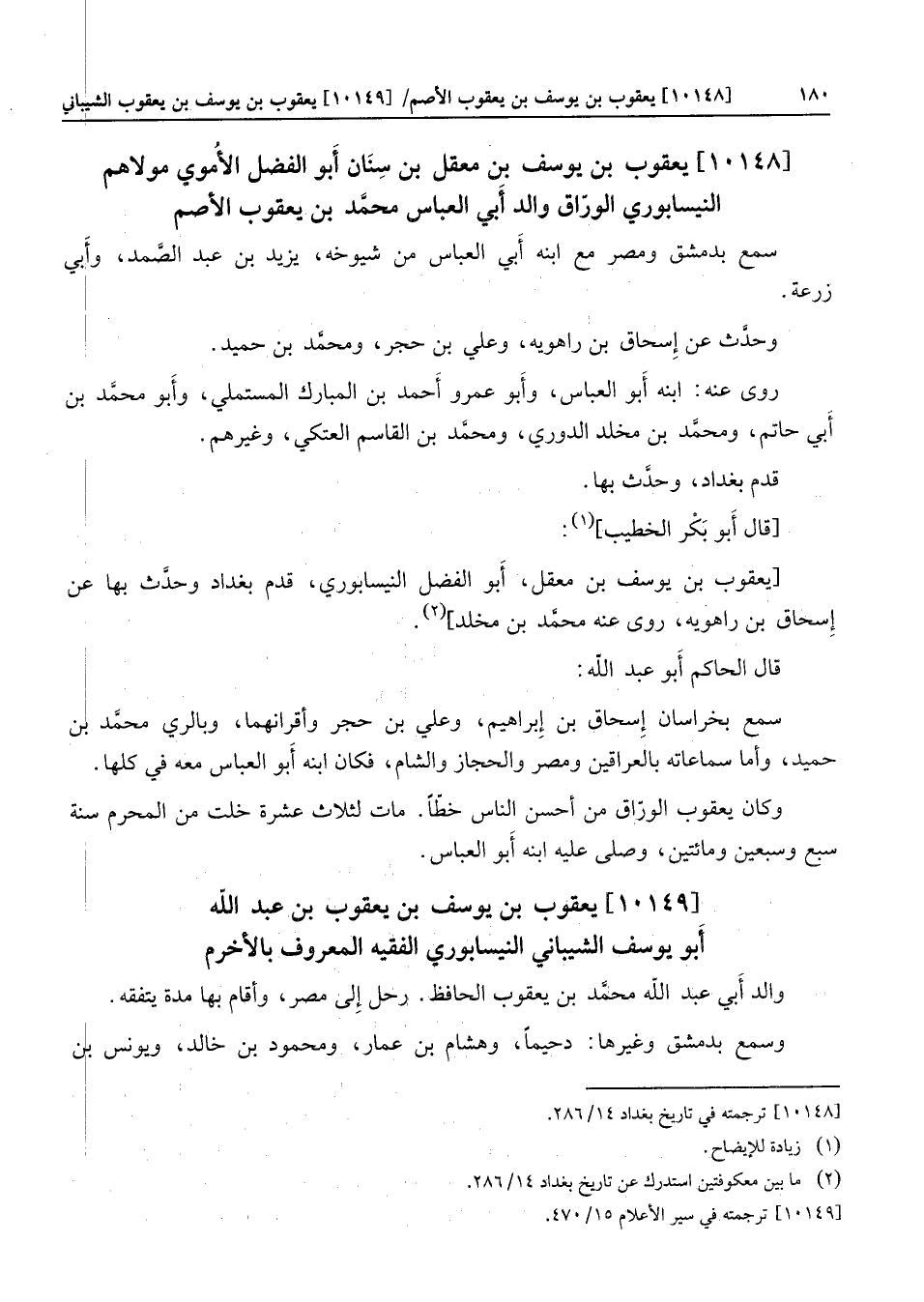 [10148] يعقوب بن يوسف بن معقل بن سنان أبو الفضل الأموي مولاهم النيسابوري الورّاق والد أبي العباس محمّد بن يعقوب الأصم