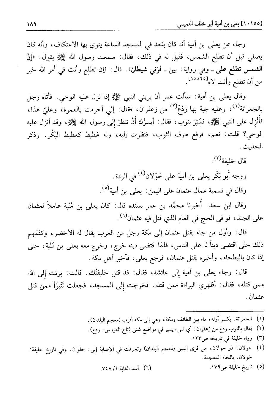 وقال في تسمية عمال عثمان على اليمن: يعلى بن أمية «5» .