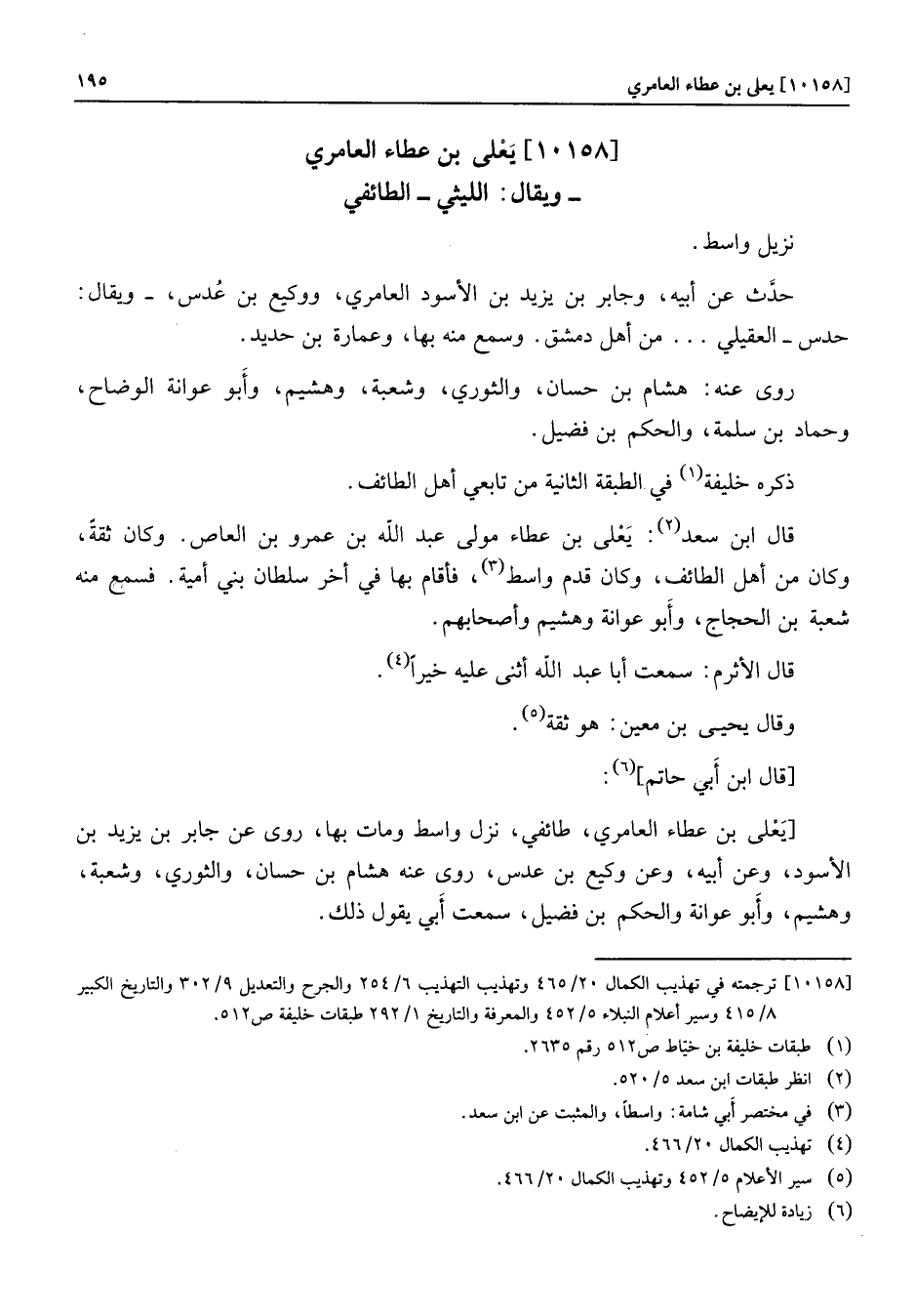 [10158] يعلى بن عطاء العامري- ويقال: الليثي- الطائفي