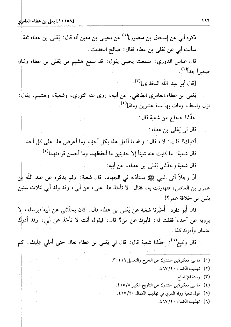 قال وكيع «6» : حدّثنا شعبة قال: قال لي يعلى بن عطاء تعال حتى أملي عليك. كم