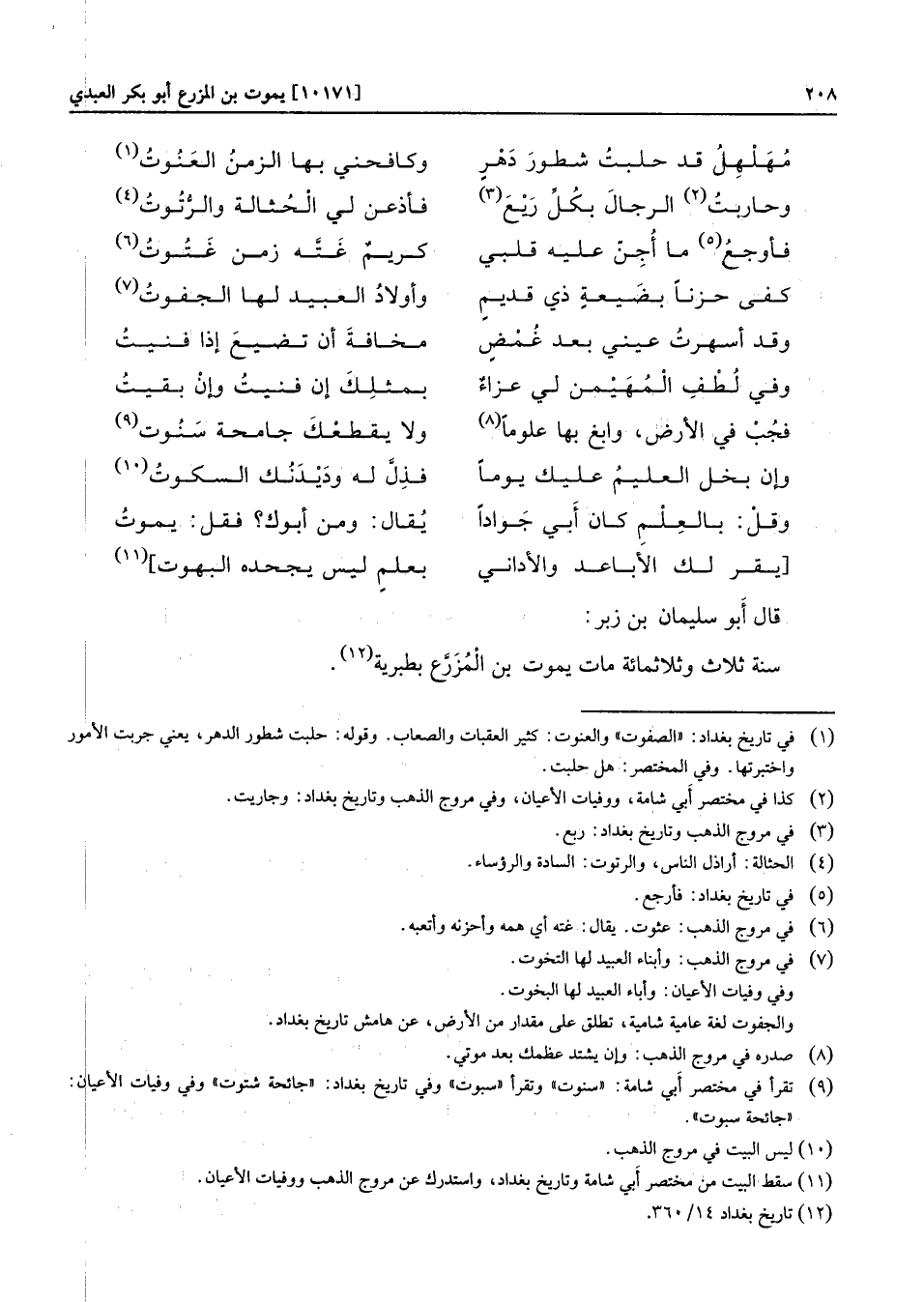 كفى حزنا بضيعة ذي قديم وأولاد العبيد لها الجفوت «7»