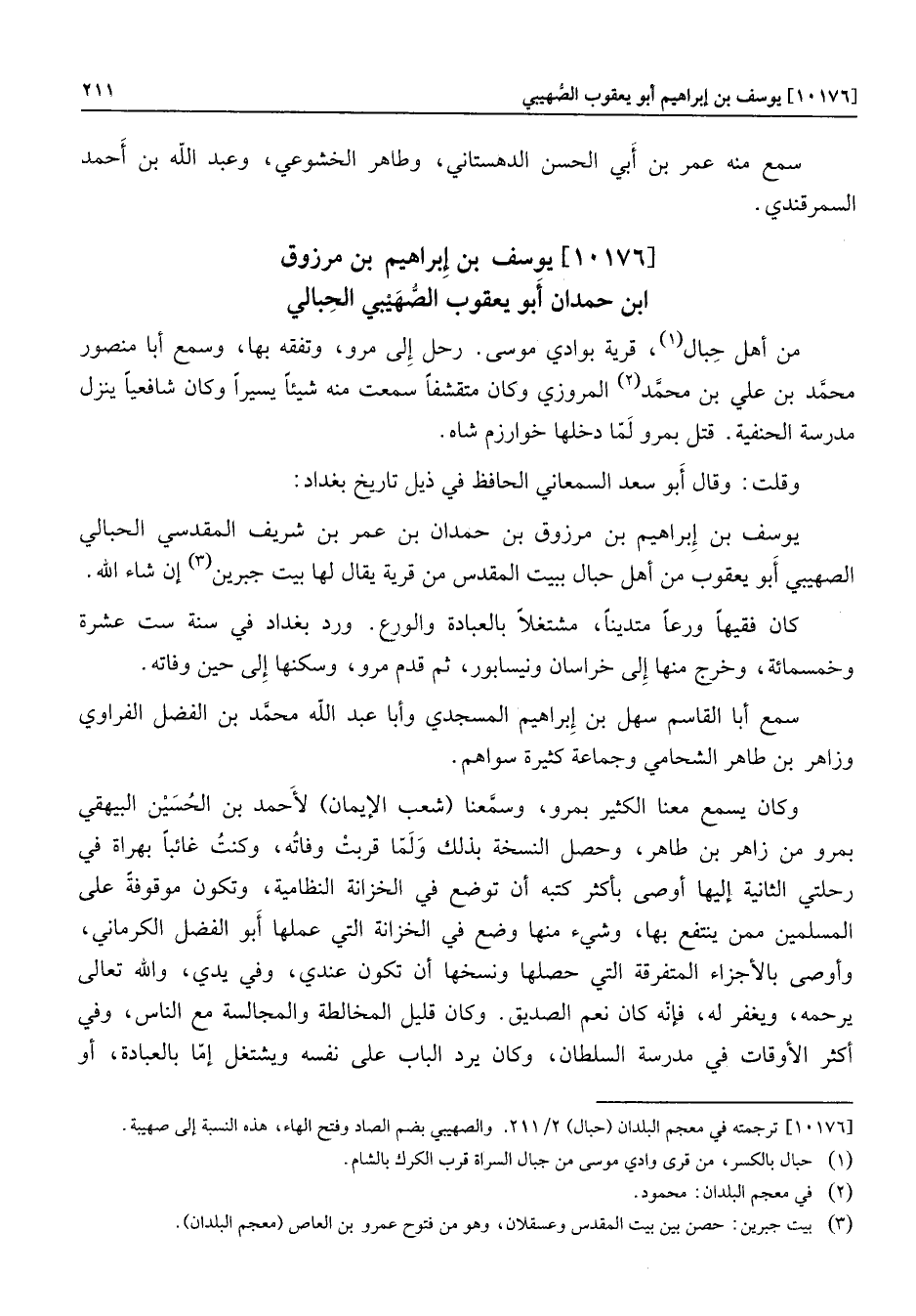 [10176] يوسف بن إبراهيم بن مرزوق ابن حمدان أبو يعقوب الصّهيبي الحبالي