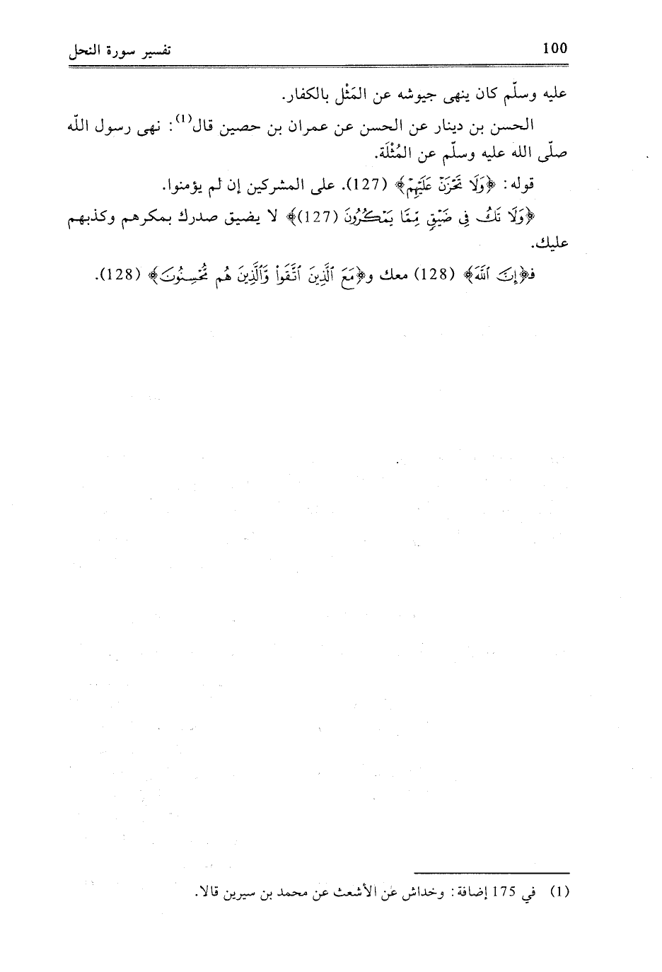 قَوْلُهُ: {وَلا تَحْزَنْ عَلَيْهِمْ} [النحل: 127] عَلَى الْمُشْرِكِينَ إِنْ لَمْ يُؤْمِنُوا.