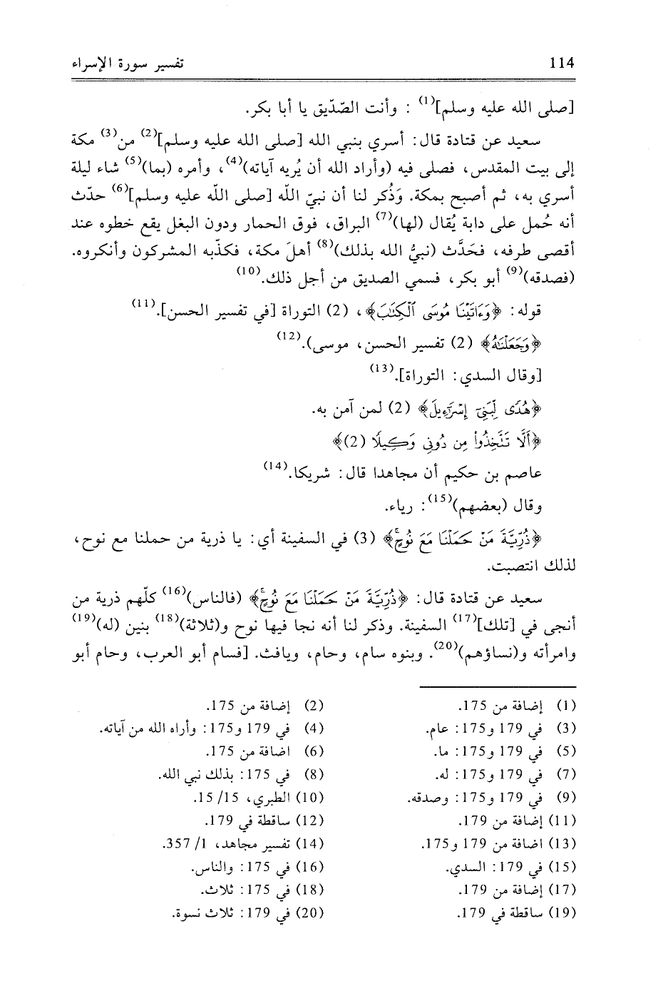 قَوْلُهُ: {وَآتَيْنَا مُوسَى الْكِتَابَ} [الإسراء: 2] ، التَّوْرَاةَ فِي تَفْسِيرِ الْحَسَنِ.