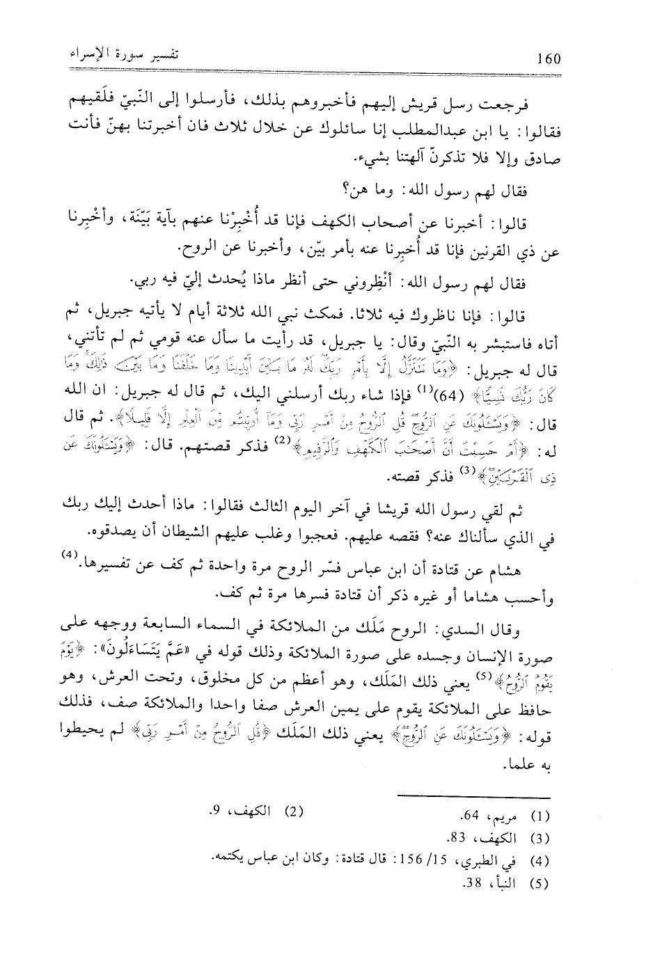 - هِشَامٌ، عَنْ قَتَادَةَ، أَنَّ ابْنَ عَبَّاسٍ فَسَّرَ الرُّوحَ مَرَّةً وَاحِدَةً ثُمَّ كَفَّ عَنْ تَفْسِيرِهَا.