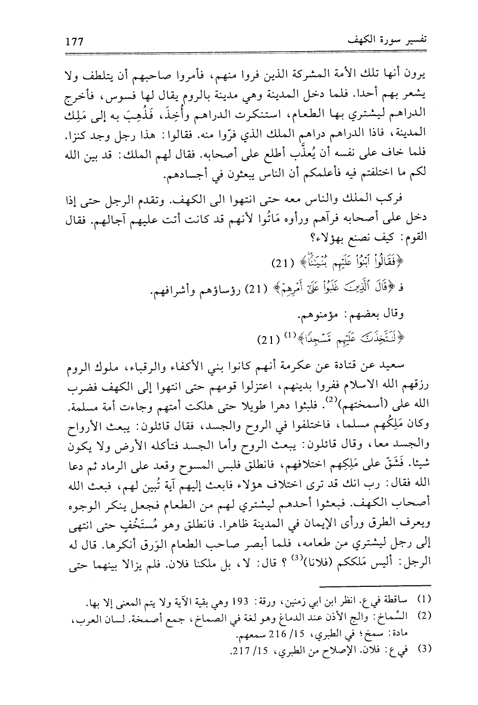 وَكَانَ مَلِكُهُمْ مُسْلِمًا، فَاخْتَلَفُوا فِي الرُّوحِ وَالْجَسَدِ، فَقَالَ قَائِلُونَ: يُبْعَثُ الأَرْوَاحُ وَالْجَسَدُ مَعًا، وَقَالَ قَائِلُونَ: يُبْعَثُ الرُّوحُ وَأَمَّا الْجَسَدُ فَتَأْكُلُهُ الأَرْضُ وَلا يَكُونُ شَيْئًا.