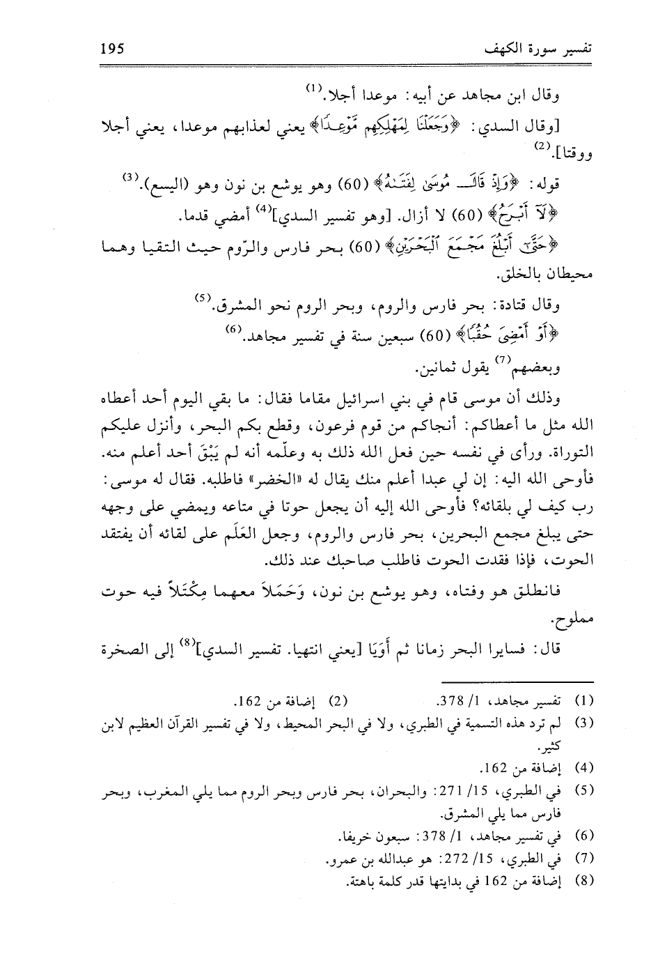 {حَتَّى أَبْلُغَ مَجْمَعَ الْبَحْرَيْنِ} [الكهف: 60] بَحْرُ فَارِسَ وَالرُّومِ، حَيْثُ الْتَقَيَا وَهُمَا مُحِيطَانِ بِالْخَلْقِ.