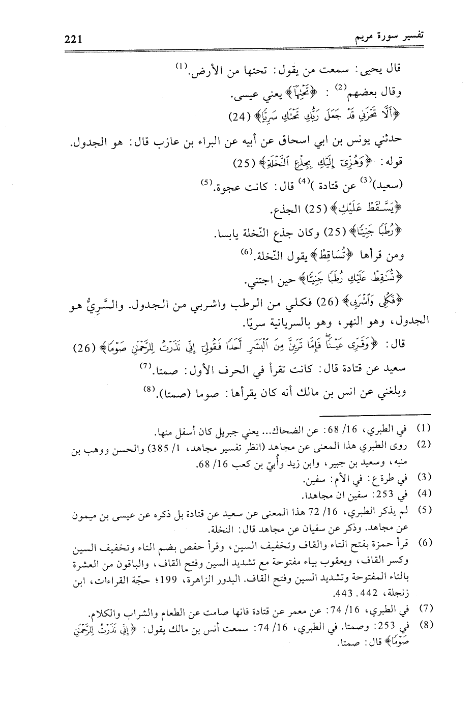 وَمَنْ قَرَأَهَا: {تُسَاقِطْ} [مريم: 25] يَقُولُ: النَّخْلَةُ.