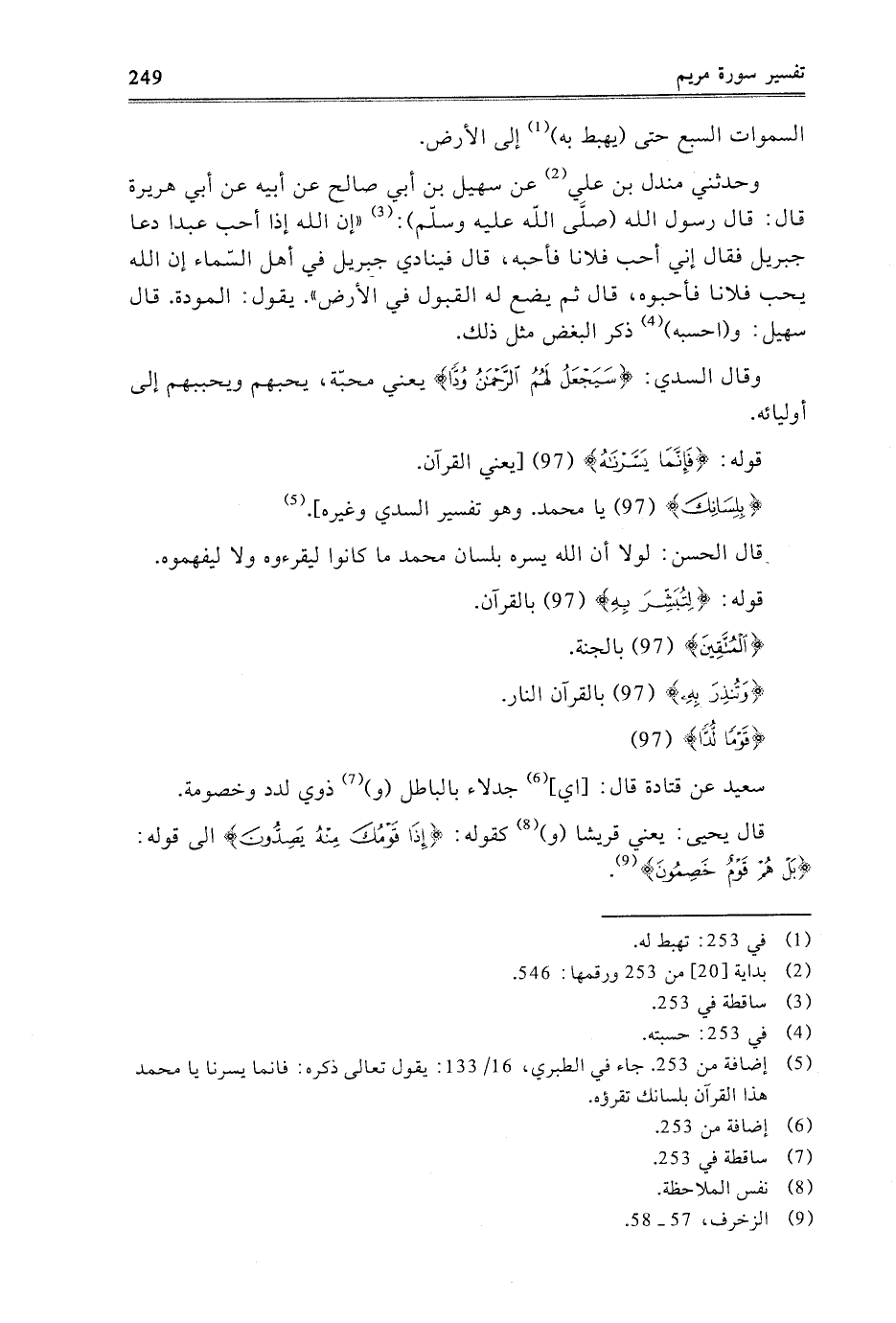 {قَوْمًا لُدًّا} [مريم: 97] سَعِيدٌ عَنْ قَتَادَةَ قَالَ: أَيْ جُدَلاءُ بِالْبَاطِلِ وَذَوِي لَدَدٍ وَخُصُومَةٍ.