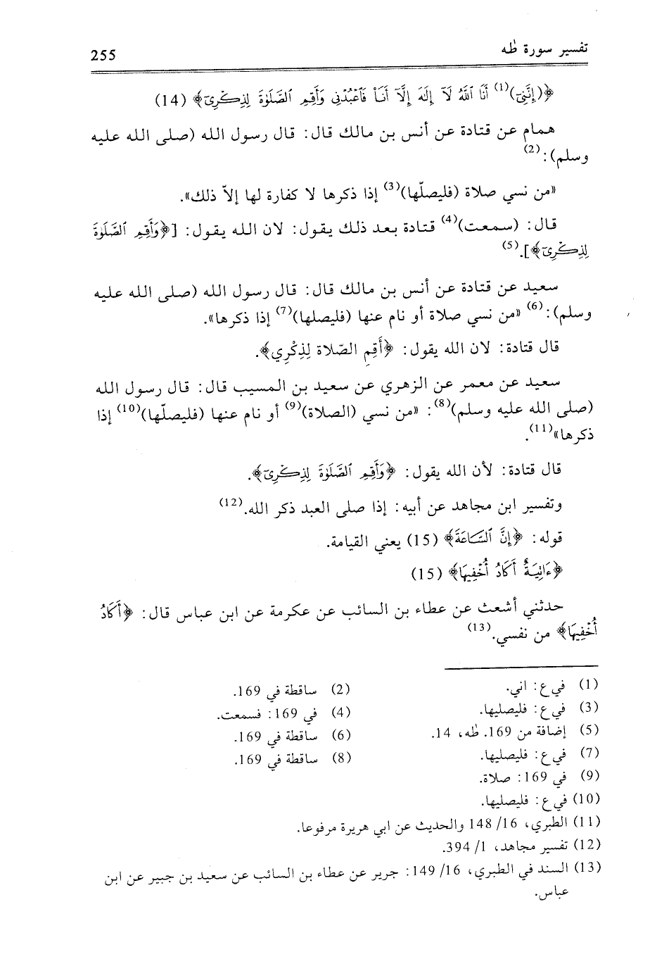 قَالَ: سَمِعْتُ قَتَادَةَ بَعْدَ ذَلِكَ يَقُولُ: لأَنَّ اللَّهَ يَقُولُ: {وَأَقِمِ الصَّلاةَ لِذِكْرِي} [طه: 14]
