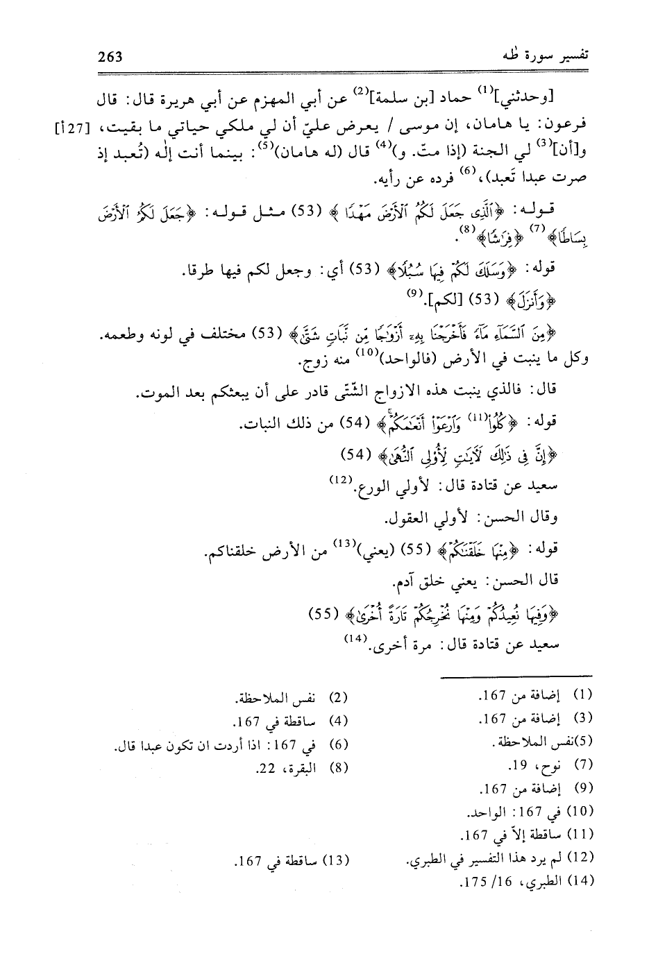 {وَفِيهَا نُعِيدُكُمْ وَمِنْهَا نُخْرِجُكُمْ تَارَةً أُخْرَى} [طه: 55] سَعِيدٌ 1: 264 -، عَنْ قَتَادَةَ قَالَ: مَرَّةً أُخْرَى.