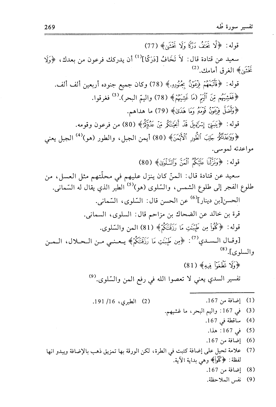 {وَلا تَطْغَوْا فِيهِ} [طه: 81] تَفْسِيرُ السُّدِّيِّ يَعْنِي: لا تَعْصُوا اللَّهَ فِي رَفْعِ الْمَنِّ وَالسَّلْوَى.