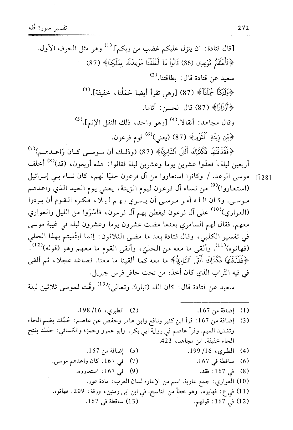 {فَقَذَفْنَاهَا فَكَذَلِكَ أَلْقَى السَّامِرِيُّ} [طه: 87] وَذَلِكَ أَنَّ مُوسَى كَانَ وَاعَدَهُمْ أَرْبَعِينَ لَيْلَةً، فَعَدُّوا عِشْرِينَ يَوْمًا وَعِشْرِينَ لَيْلَةً فَقَالُوا: هَذِهِ أَرْبَعُونَ، قَدْ أَخْلَفَ مُوسَى الْوَعْدَ.