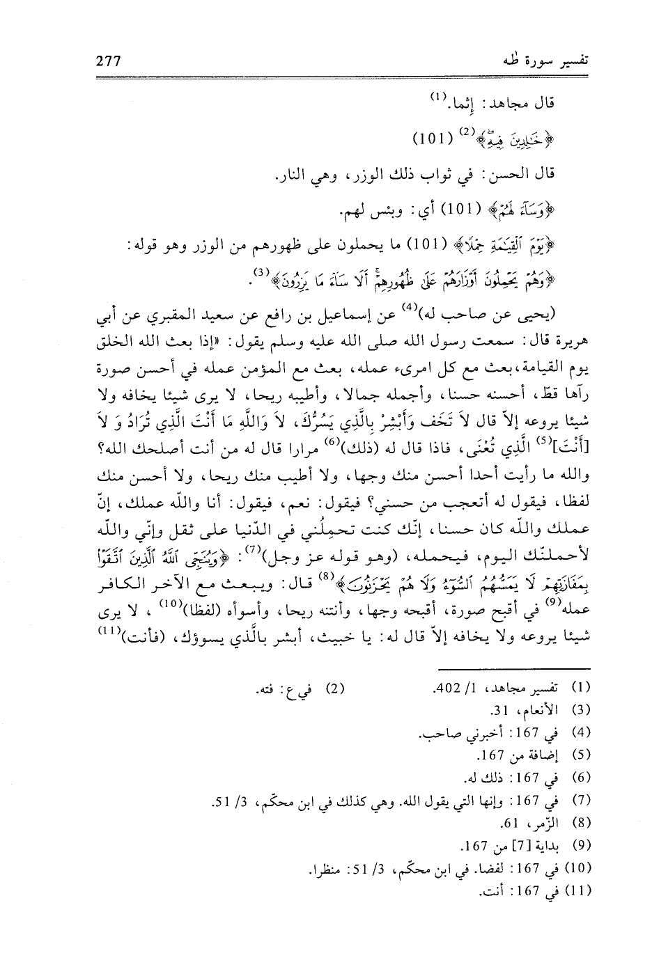 {خَالِدِينَ فِيهِ} [طه: 101] قَالَ الْحَسَنُ: فِي ثَوَابِ ذَلِكَ الْوِزْرِ، وَهِيَ النَّارُ.