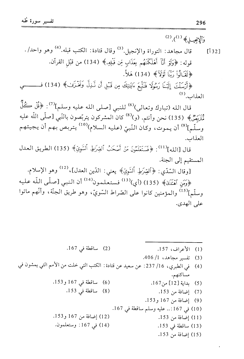 وَقَالَ السُّدِّيُّ: {الصِّرَاطِ السَّوِيِّ} [طه: 135] يَعْنِي: الدِّينُ الْعَدْلُ، وَهُوَ الإِسْلامُ.