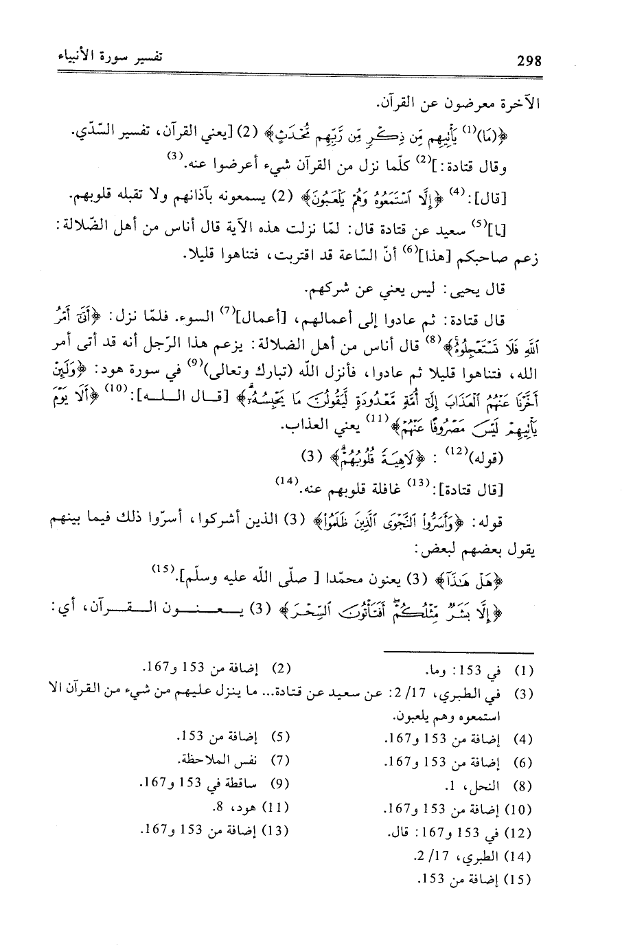 قَوْلُهُ: {لاهِيَةً قُلُوبُهُمْ} [الأنبياء: 3] قَالَ قَتَادَةُ: غَافِلَةً قُلُوبُهُمْ عَنْهُ.