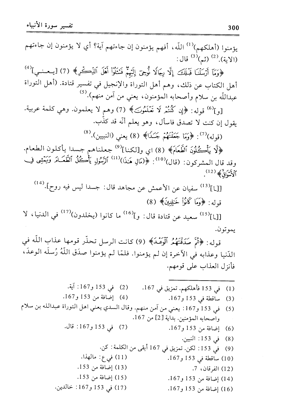 ثُمَّ قَالَ: {وَمَا أَرْسَلْنَا قَبْلَكَ إِلا رِجَالا نُوحِي إِلَيْهِمْ فَاسْأَلُوا أَهْلَ الذِّكْرِ} [الأنبياء: 7] يَعْنِي أَهْلَ الْكِتَابِ عَنْ ذَلِكَ، وَهُوَ أَهْلُ التَّوْرَاةِ وَالإِنْجِيلِ فِي تَفْسِيرِ قَتَادَةَ.