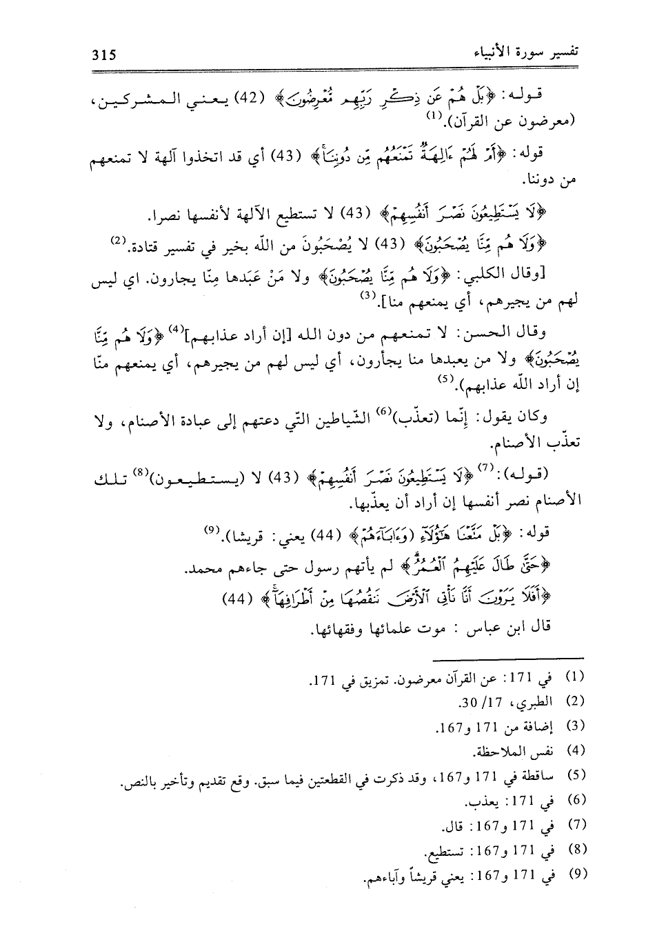 قَوْلُهُ: {لا يَسْتَطِيعُونَ نَصْرَ أَنْفُسِهِمْ} [الأنبياء: 43] لا يَسْتَطِيعُونَ تِلْكَ الأَصْنَامُ نَصْرَ أَنْفُسِهَا إِنْ أَرَادَ أَنْ يُعَذِّبَهَا.