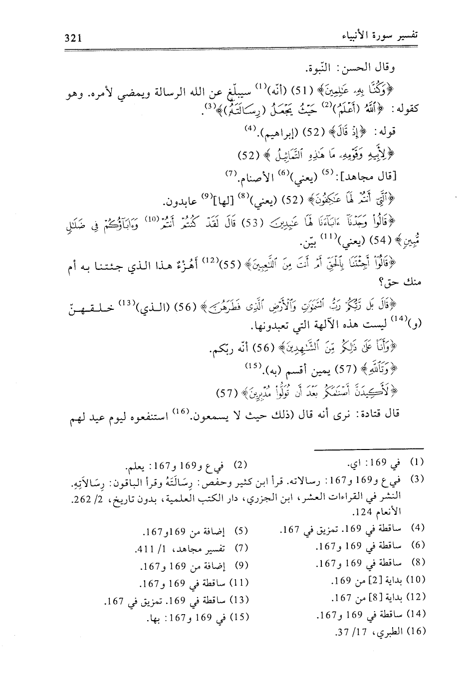 {قَالُوا أَجِئْتَنَا بِالْحَقِّ أَمْ أَنْتَ مِنَ اللَّاعِبِينَ} [الأنبياء: 55] أهُزْءٌ هَذَا الَّذِي جِئْتَنَا بِهِ أَمْ مِنْكَ حَقٌّ؟ {قَالَ بَلْ رَبُّكُمْ رَبُّ السَّمَوَاتِ وَالأَرْضِ الَّذِي فَطَرَهُنَّ} [الأنبياء: 56] الَّذِي خَلَقَهُنَّ وَلَيْسَتْ هَذِهِ الآلِهَةُ الَّتِي تَعْبُدُونَهَا.