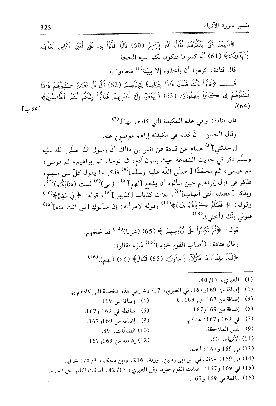{سَمِعْنَا فَتًى يَذْكُرُهُمْ يُقَالُ لَهُ إِبْرَاهِيمُ {60} قَالُوا فَأْتُوا بِهِ عَلَى أَعْيُنِ النَّاسِ لَعَلَّهُمْ يَشْهَدُونَ {61} } [الأنبياء: 60-61] أَنَّهُ كَسَرَهَا فَتَكُونُ لَكُمْ عَلَيْهِ الْحُجَّةُ.