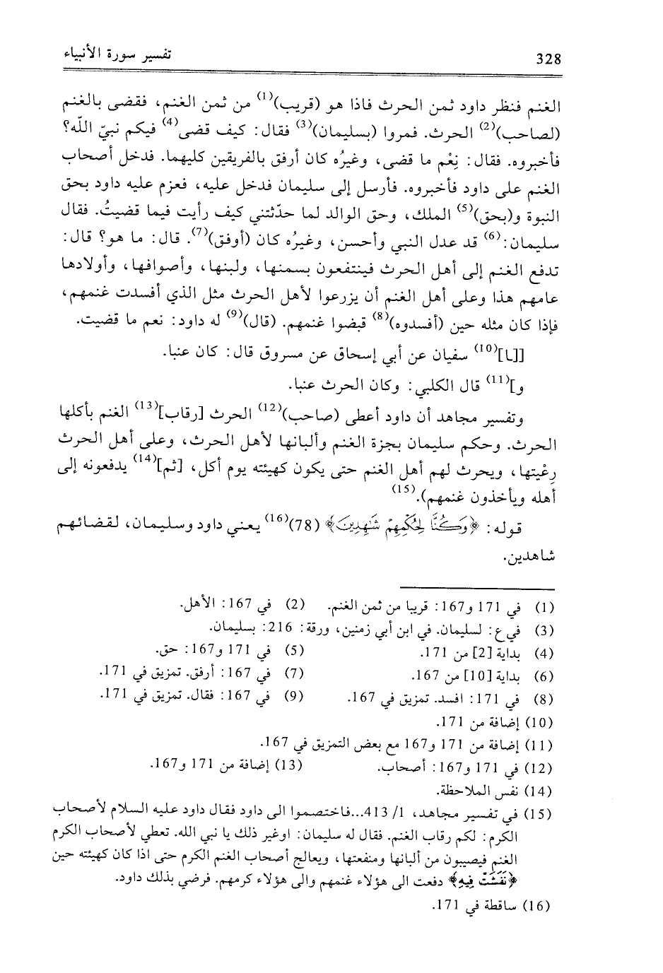قَوْلُهُ: {وَكُنَّا لِحُكْمِهِمْ شَاهِدِينَ} [الأنبياء: 78] يَعْنِي دَاوُدَ وَسُلَيْمَانَ، لِقَضَائِهِمْ شَاهِدِينَ.