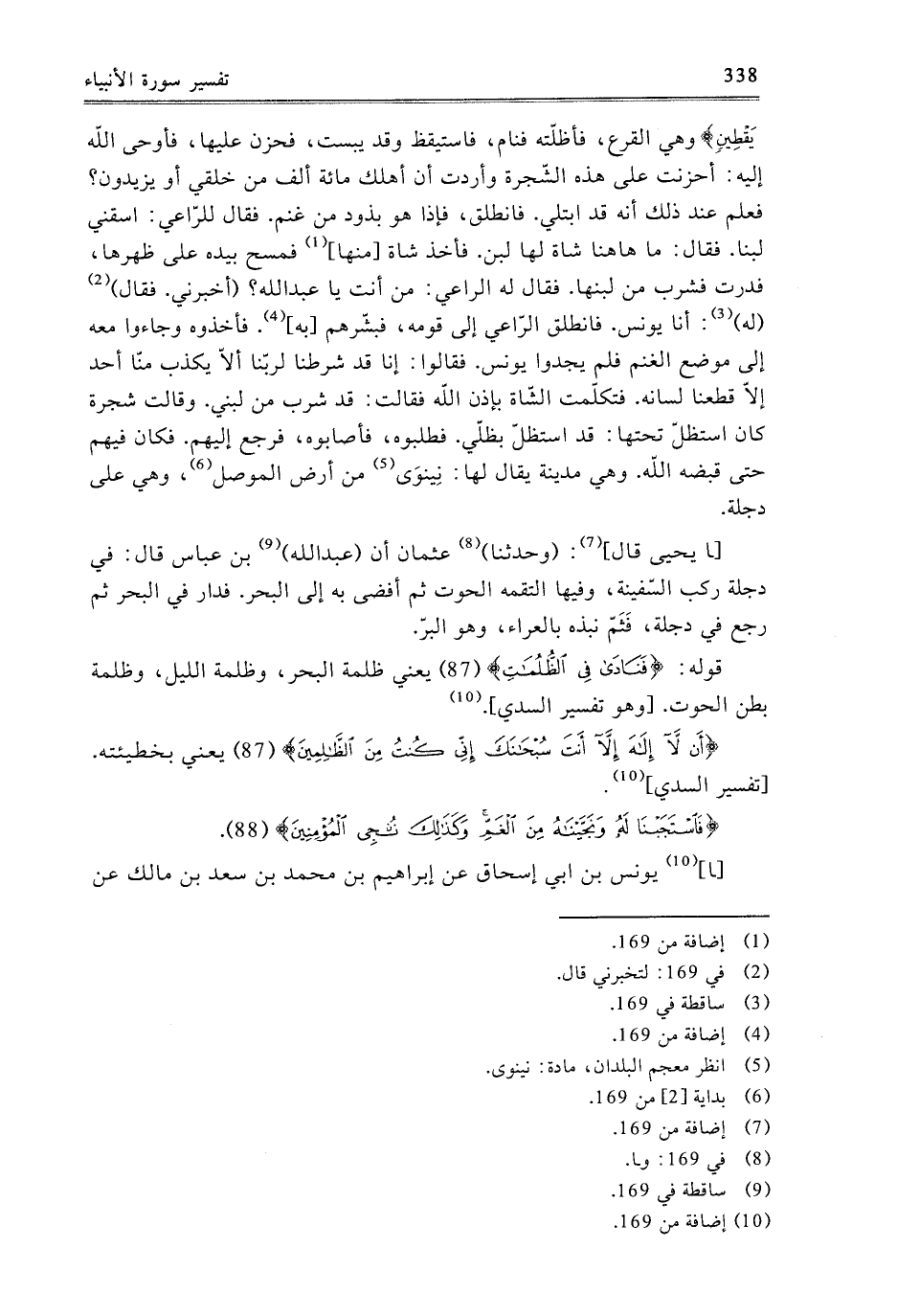 - نا يَحْيَى قَالَ: وَحَدَّثَنَا عُثْمَانُ أَنَّ عَبْدَ اللَّهِ بْنَ عَبَّاسٍ قَالَ: فِي دِجْلَةَ رَكِبَ السَّفِينَةَ، وَفِيهَا الْتَقَمَهُ الْحُوتُ ثُمَّ أَفْضَى بِهِ إِلَى الْبَحْرِ.