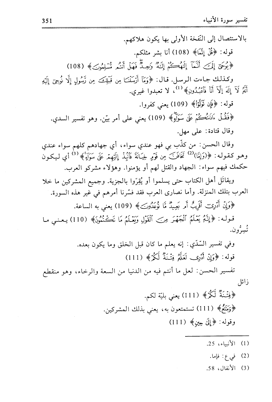 قَوْلُهُ: {فَإِنْ تَوَلَّوْا} [الأنبياء: 109] يَعْنِي كَفَرُوا.