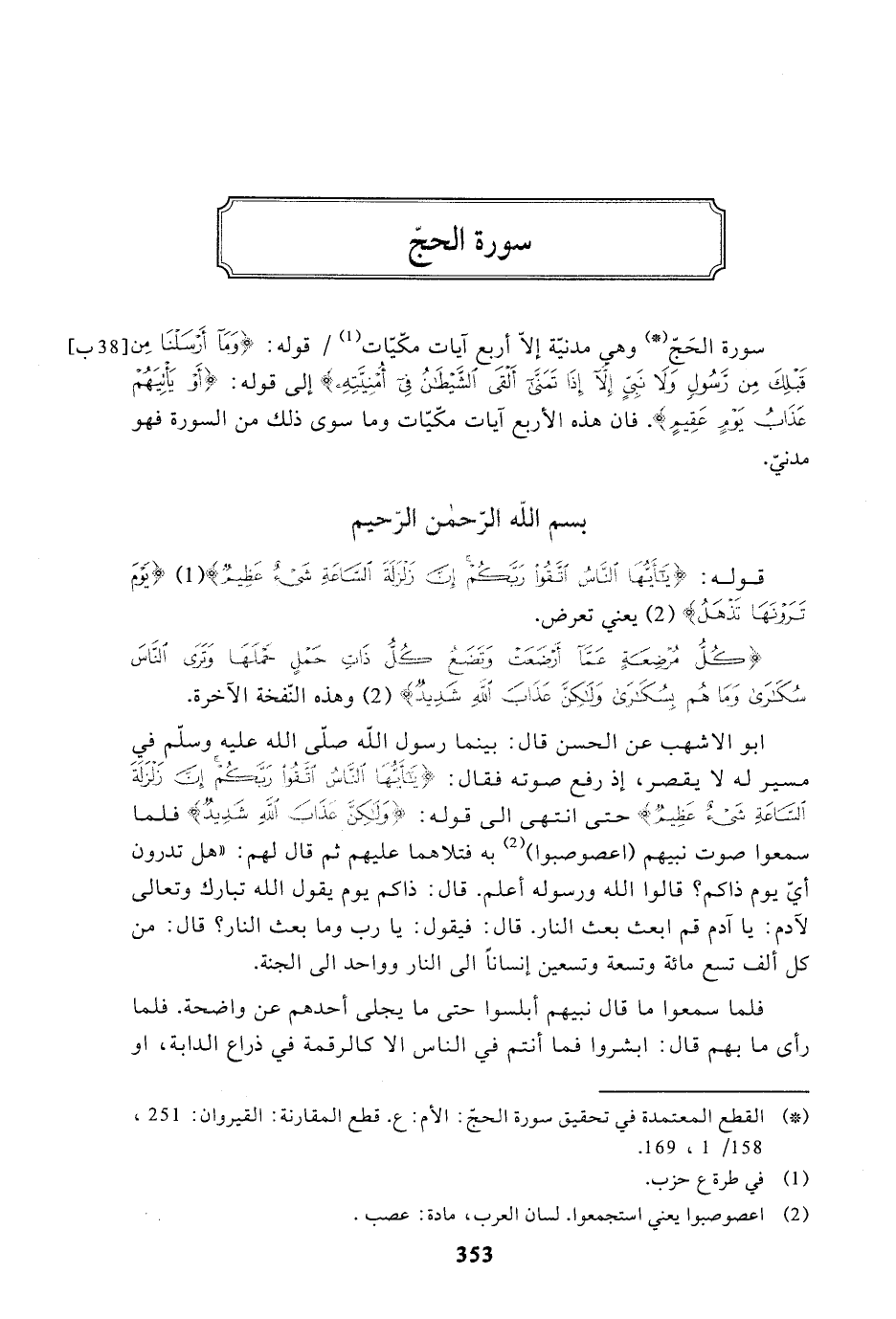 سُورَةُ الْحَجِّ وَهِيَ مَدَنِيَّةٌ إِلا أَرْبَعَ آيَاتٍ مَكِّيَّاتٍ
