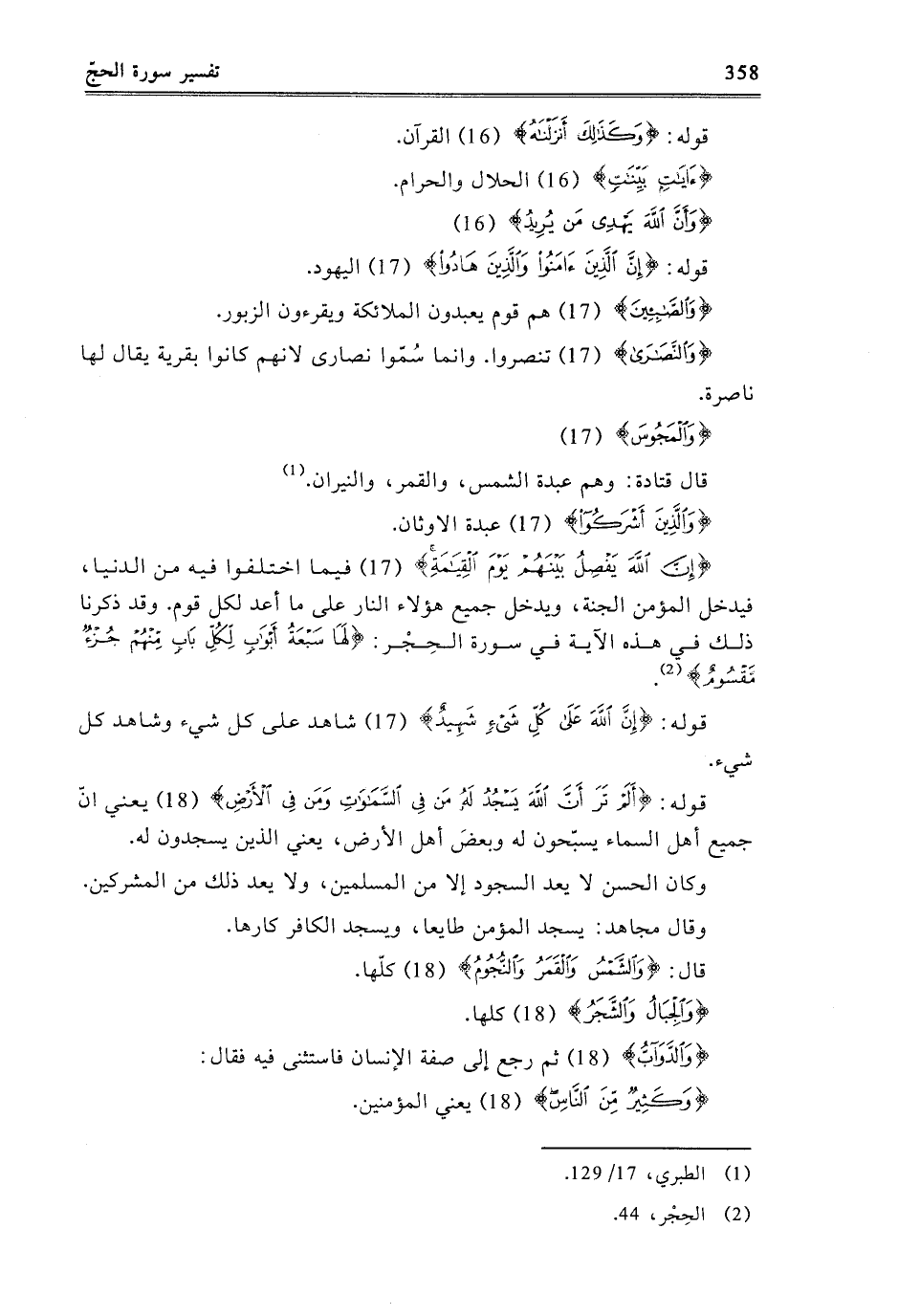 {وَالْمَجُوسَ} [الحج: 17] قَالَ قَتَادَةُ: وَهُمْ عَبَدَةُ الشَّمْسِ، وَالْقَمَرِ، وَالنِّيرَانِ.